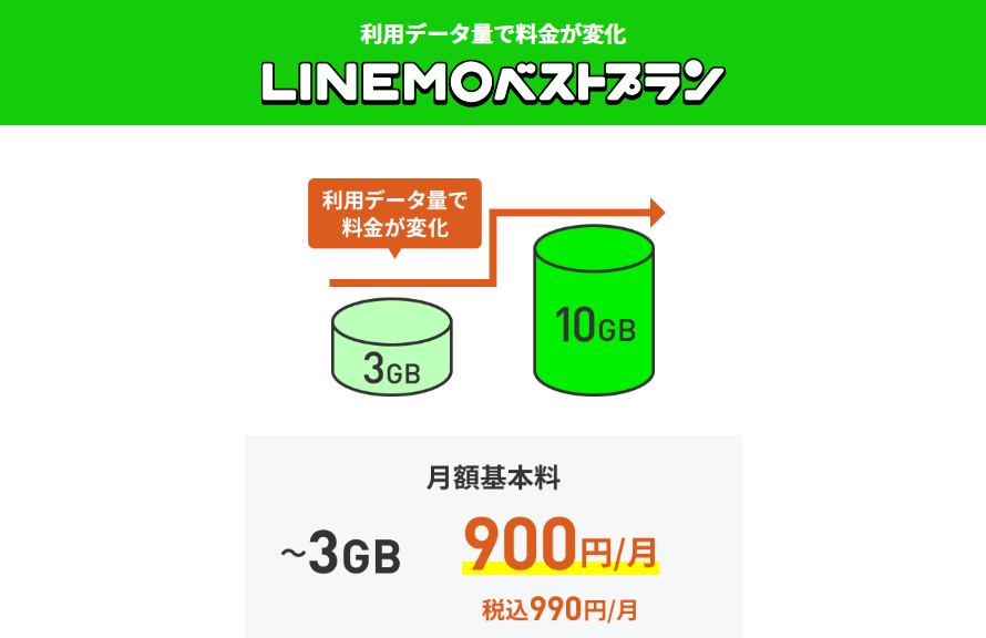 第3位:LINEMO ベストプラン(3GB)※1GB換算