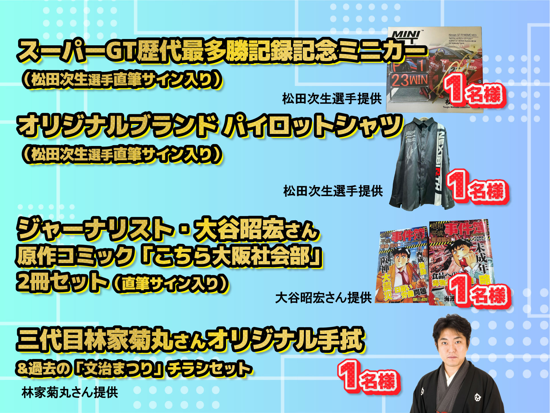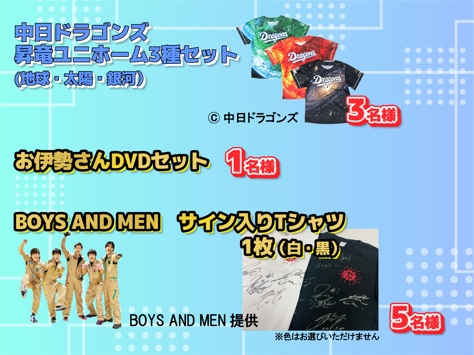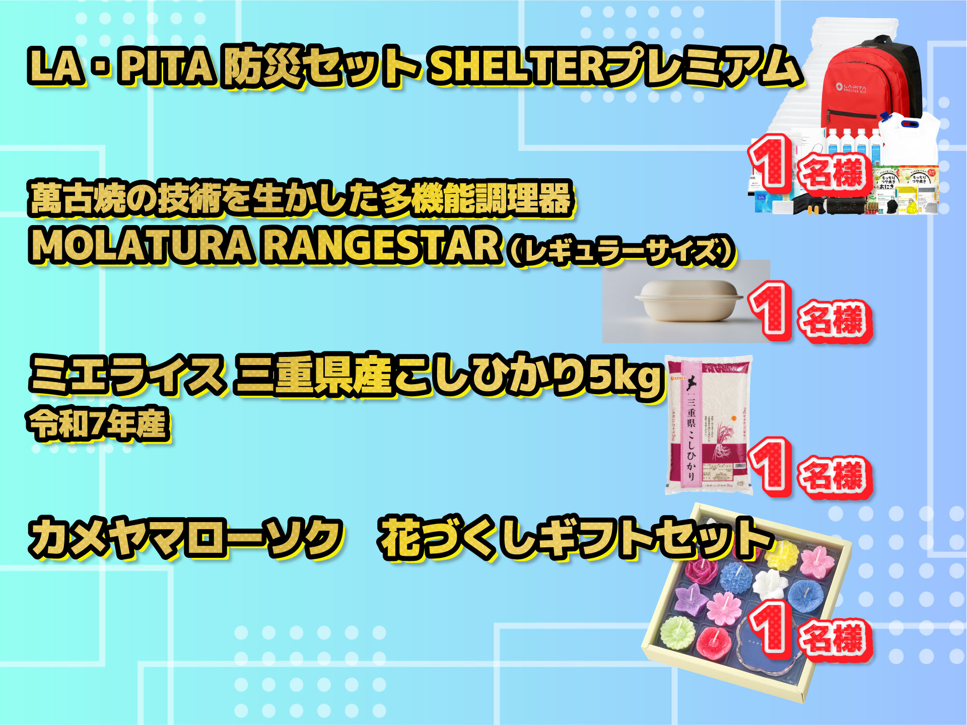 応募は下記のそれぞれのブロックから1賞品ずつお選びください。