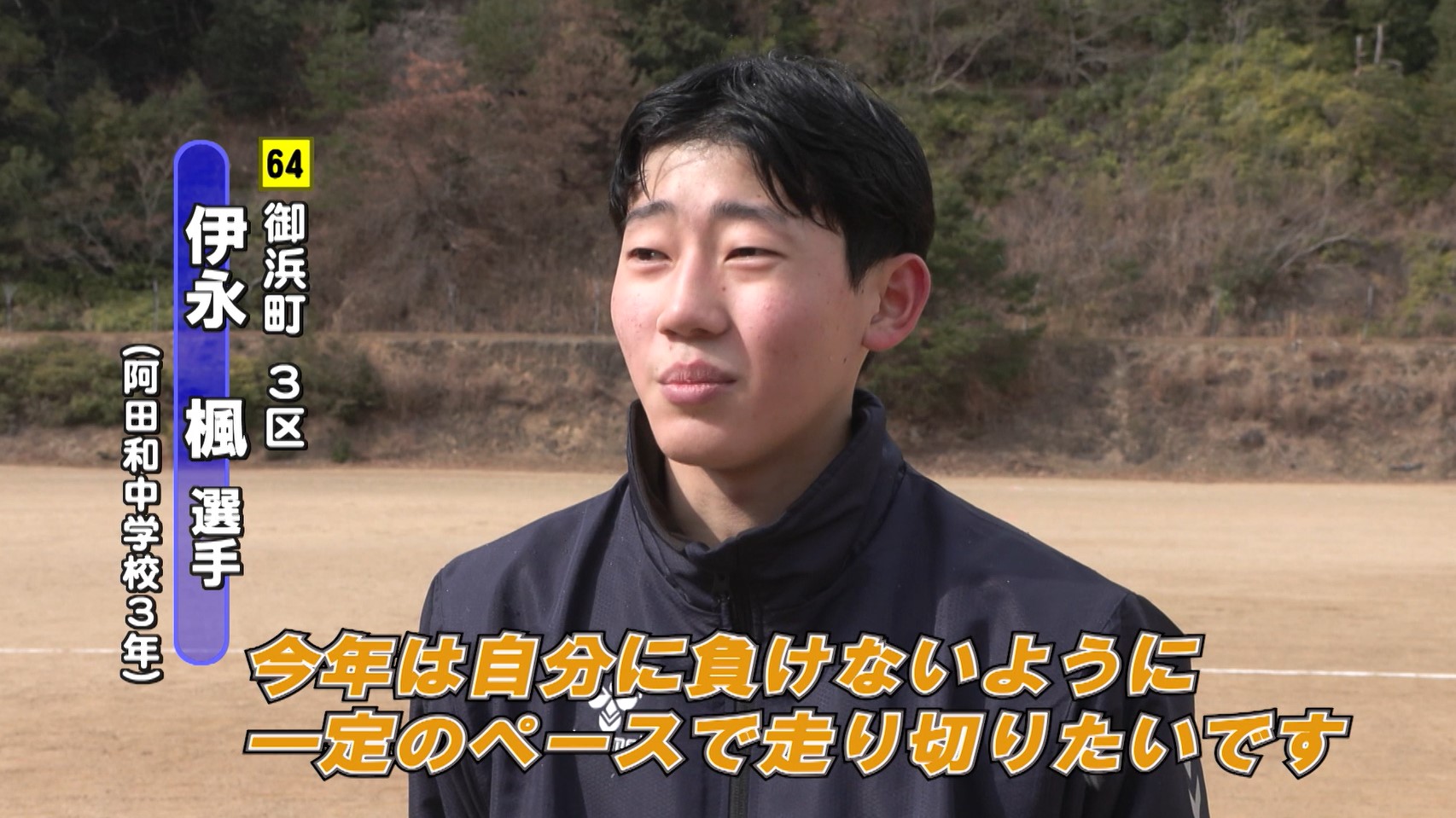 持久力で勝負する3区の伊永楓選手は「去年、少し自分に負けてしまったところがあるので、今年は負けないように一定のペースで走り切りたい」と意気込みを語りました。