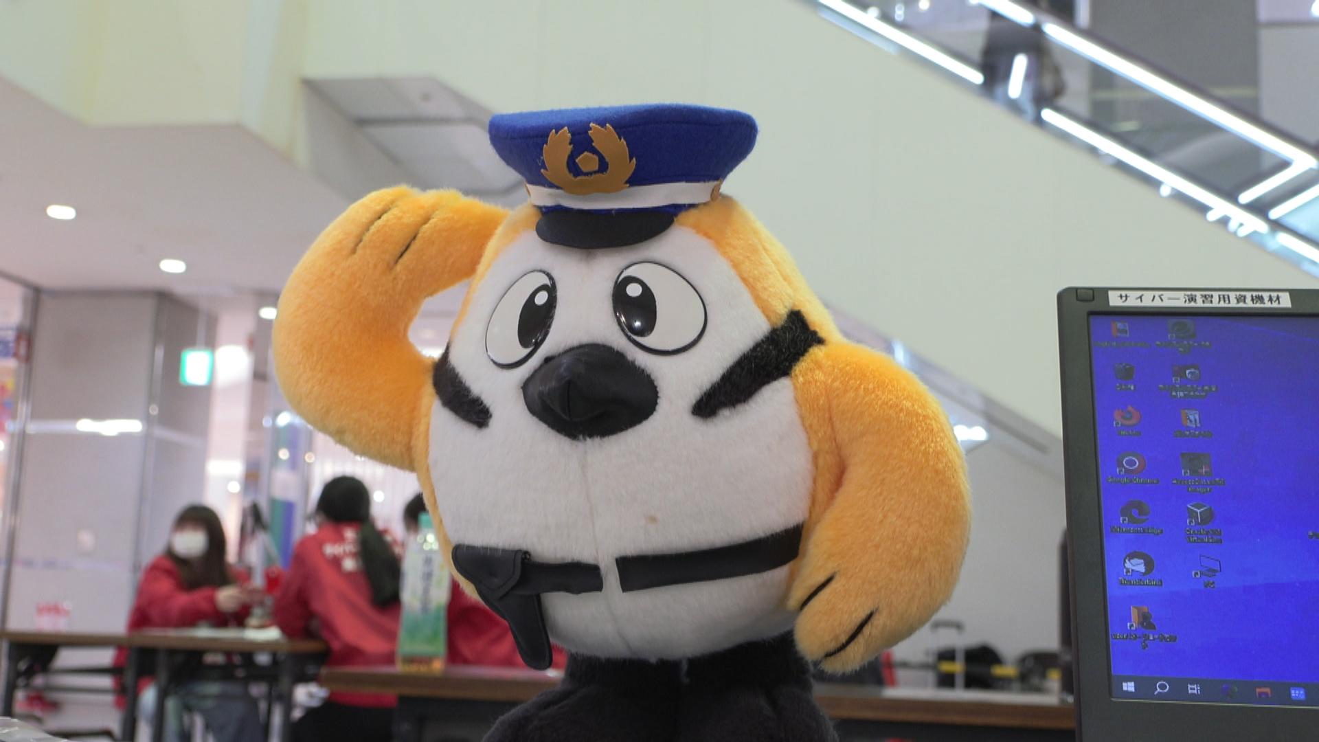 会場ではパソコンなどがウイルスに感染したように見せかけて、個人情報や金銭を盗み取るサポート詐欺の手口の体験や、ボランティア学生による缶バッチ作りなどが行われ、買い物客らでにぎわいました。
