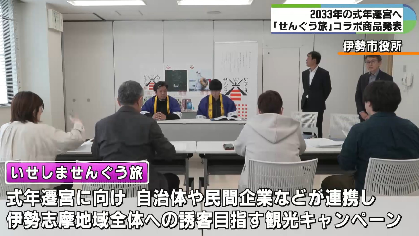 2033年に予定されている伊勢神宮の式年遷宮に向けて、伊勢志摩地域への誘客を目指す観光キャンペーン「いせしませんぐう旅」とコラボした商品の発表会が28日、三重県伊勢市で開かれました。