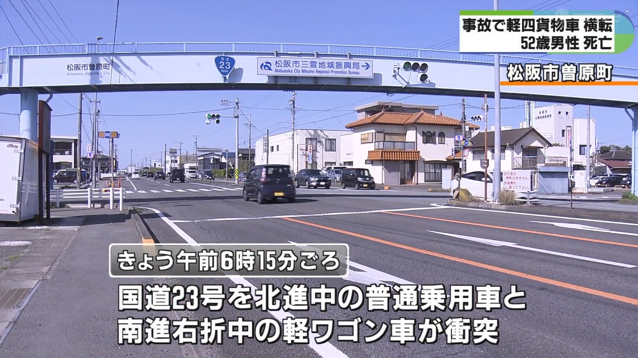 三重県松阪市の国道23号で普通乗用車と軽ワゴン車が衝突する事故があり、軽ワゴン車を運転していた男性が死亡しました。