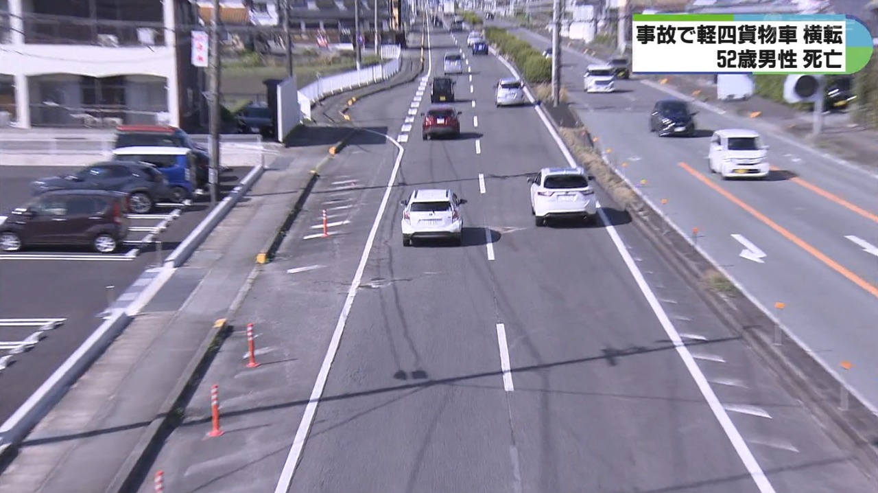 この事故で軽ワゴン車が横転し、運転していた金井久好さん(52)が頭などを強く打って市内の病院に搬送されましたが、その後、死亡が確認されました。