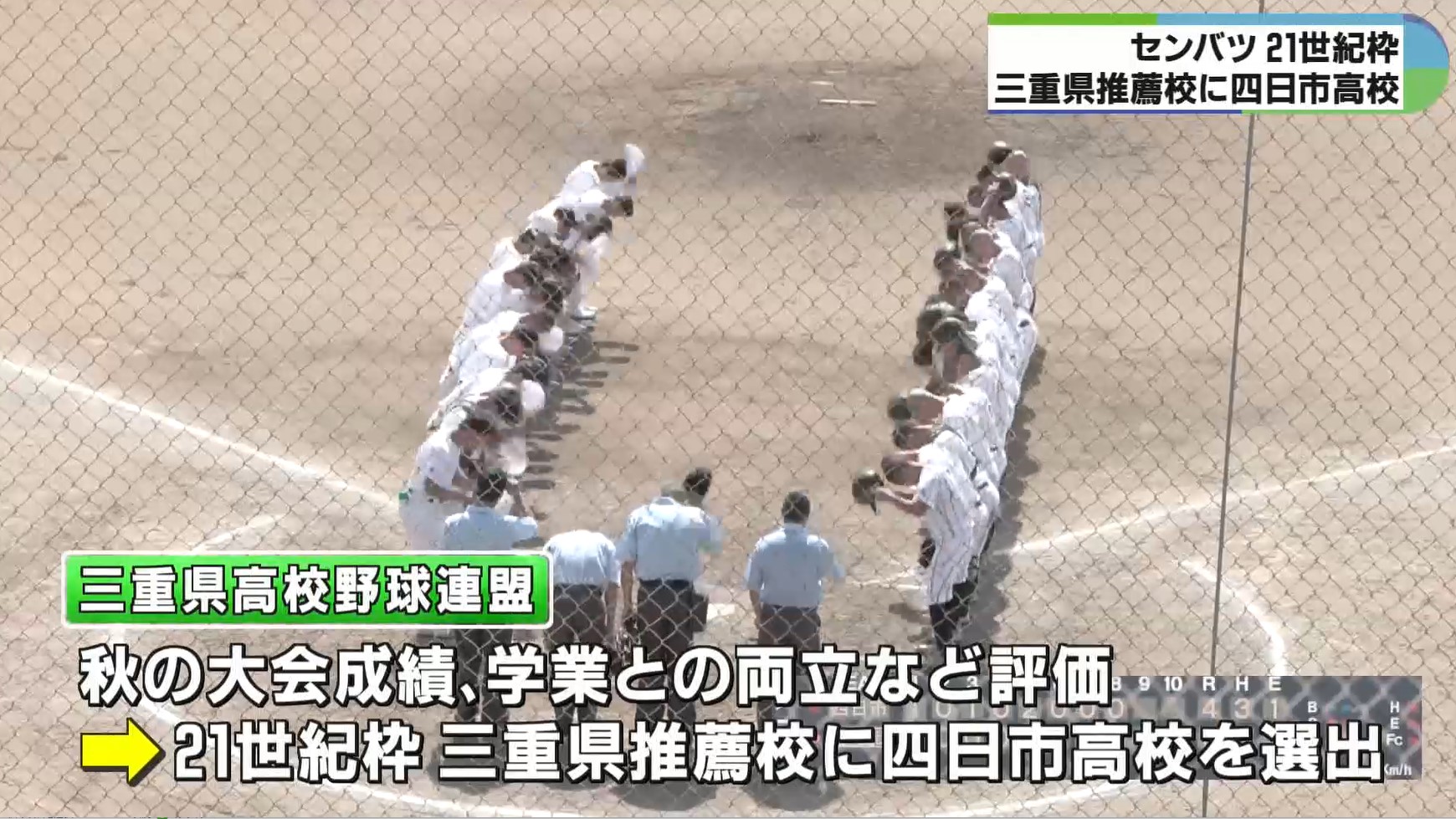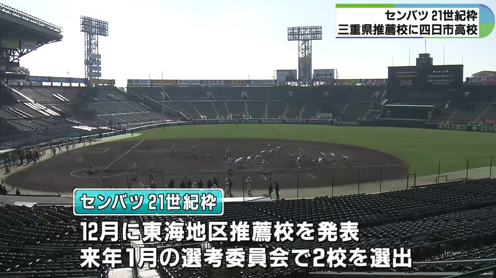 来年3月に甲子園球場で開幕するセンバツ高校野球大会の21世紀枠の三重県の推薦校に、秋の三重県大会でベスト4に進出した四日市高校が選ばれました。