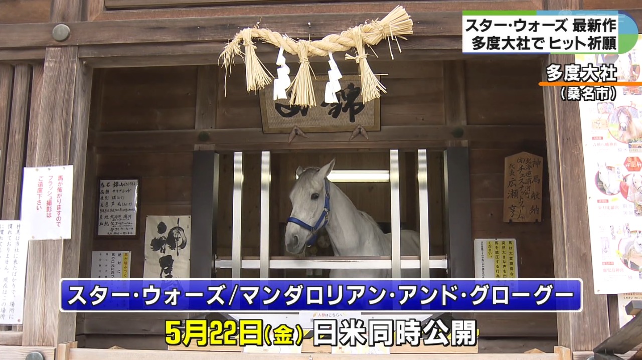 スター・ウォーズの最新作が、5月22日に日本とアメリカで同時公開されるのを前に、馬との関わりが深く、跳躍や上昇のエネルギーを持つといわれている多度大社で、作品のヒットを祈願して実施しました。