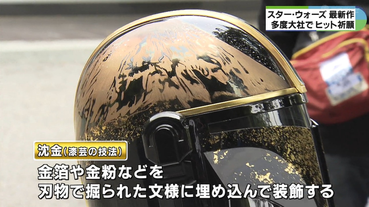 ヘルメットを制作したのは輪島塗職人の芝山佳範さんで、劇中で登場する丈夫な鎧(よろい)をイメージして、黒色の漆を6回ほど重ね塗りしたと話しデザインから完成に至るまで、約5カ月の歳月を要したと振り返りました。