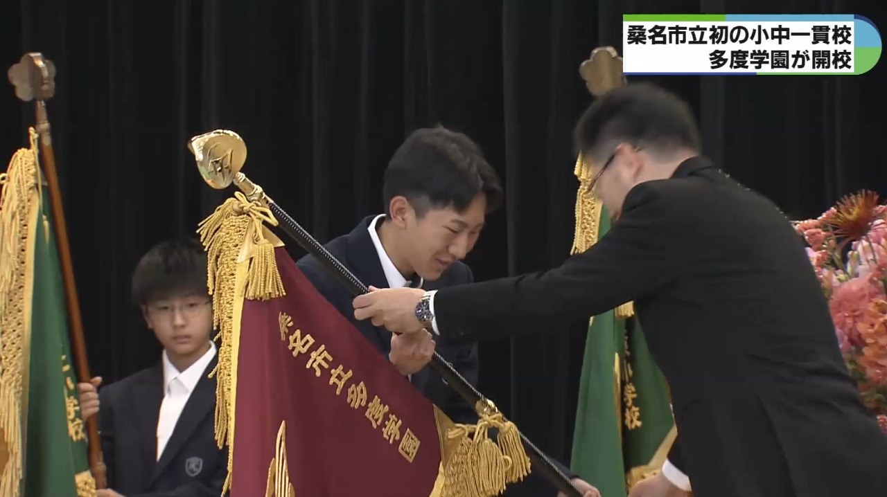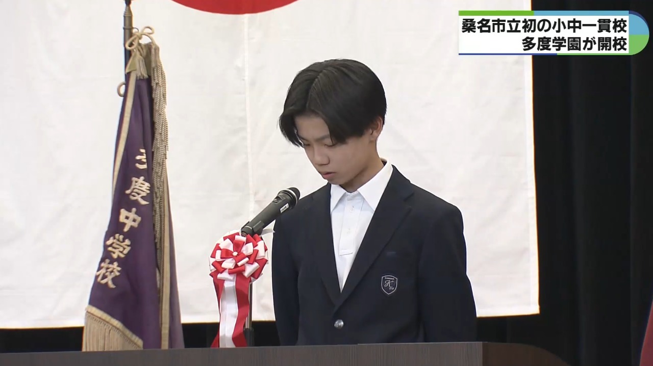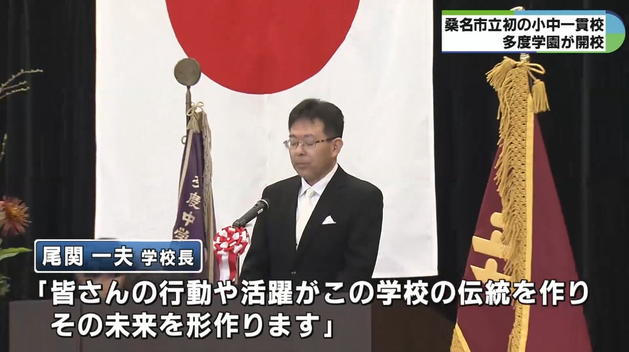 三重県桑名市が計画している小中学校の再編に伴い8日、5つの小中学校が統合された小中一貫校多度学園が開校し児童と生徒が一緒に新たな学校生活をスタートさせました。