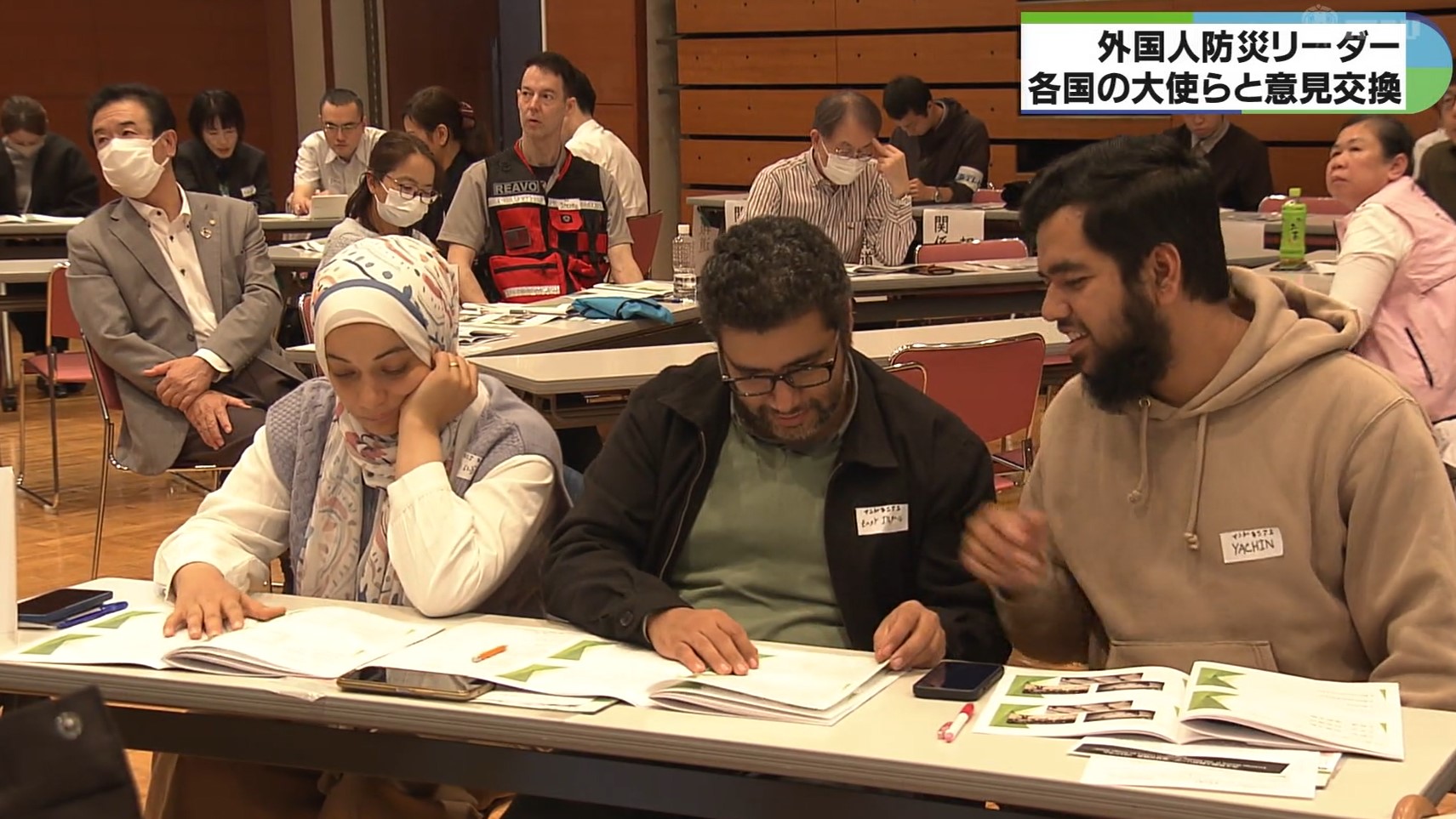 各国の大使館や領事館の職員らは国別に災害発生時の対応について紹介したあと、外国人防災リーダーたちと意見を交わしていました。