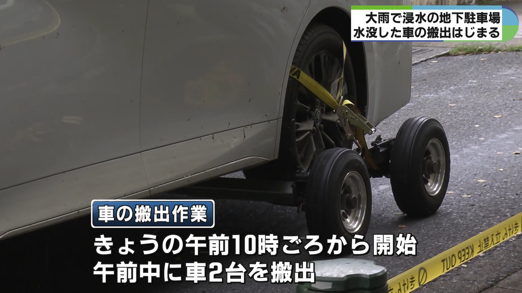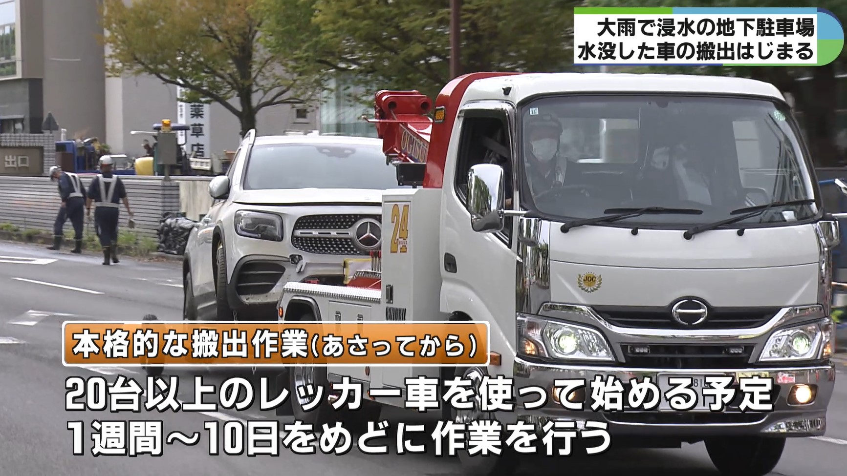 浸水した地下駐車場で車の搬出作業始まる