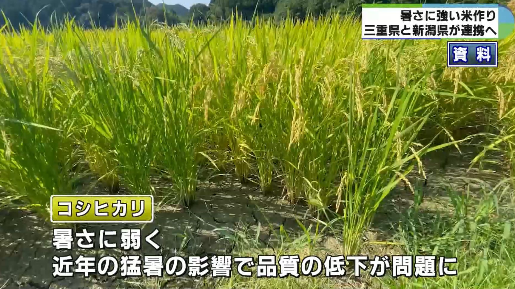 三重県内の米の主力品種であるコシヒカリは暑さに弱く、近年の猛暑の影響で品質の低下が問題となっていて、去年県内で収穫されたコシヒカリの一等米比率は19%で、4年前の半分以下となっています。