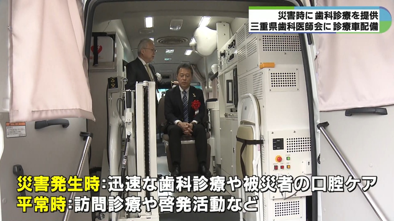 大規模地震などの災害発生時に、迅速かつ機動的に歯科医療を提供する「歯科診療車」が三重県歯科医師会に配備され9日、関係者にお披露目されました。