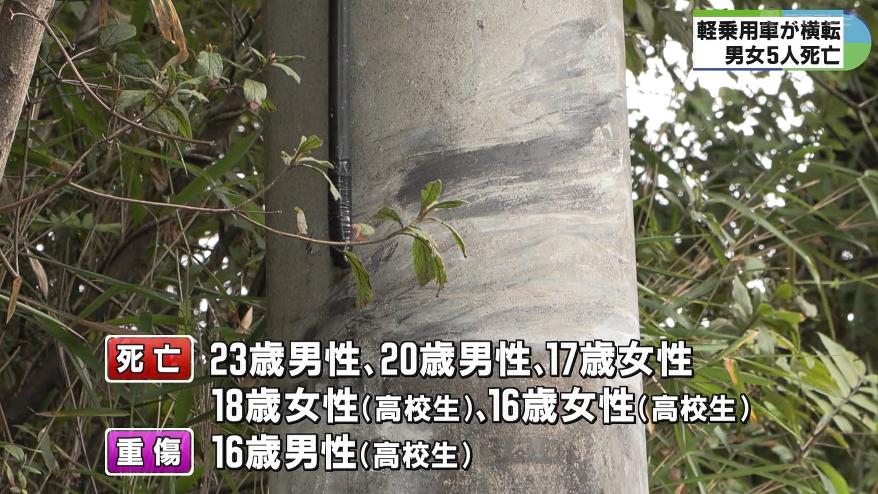高校生を含む10代から20代の男女5人死亡