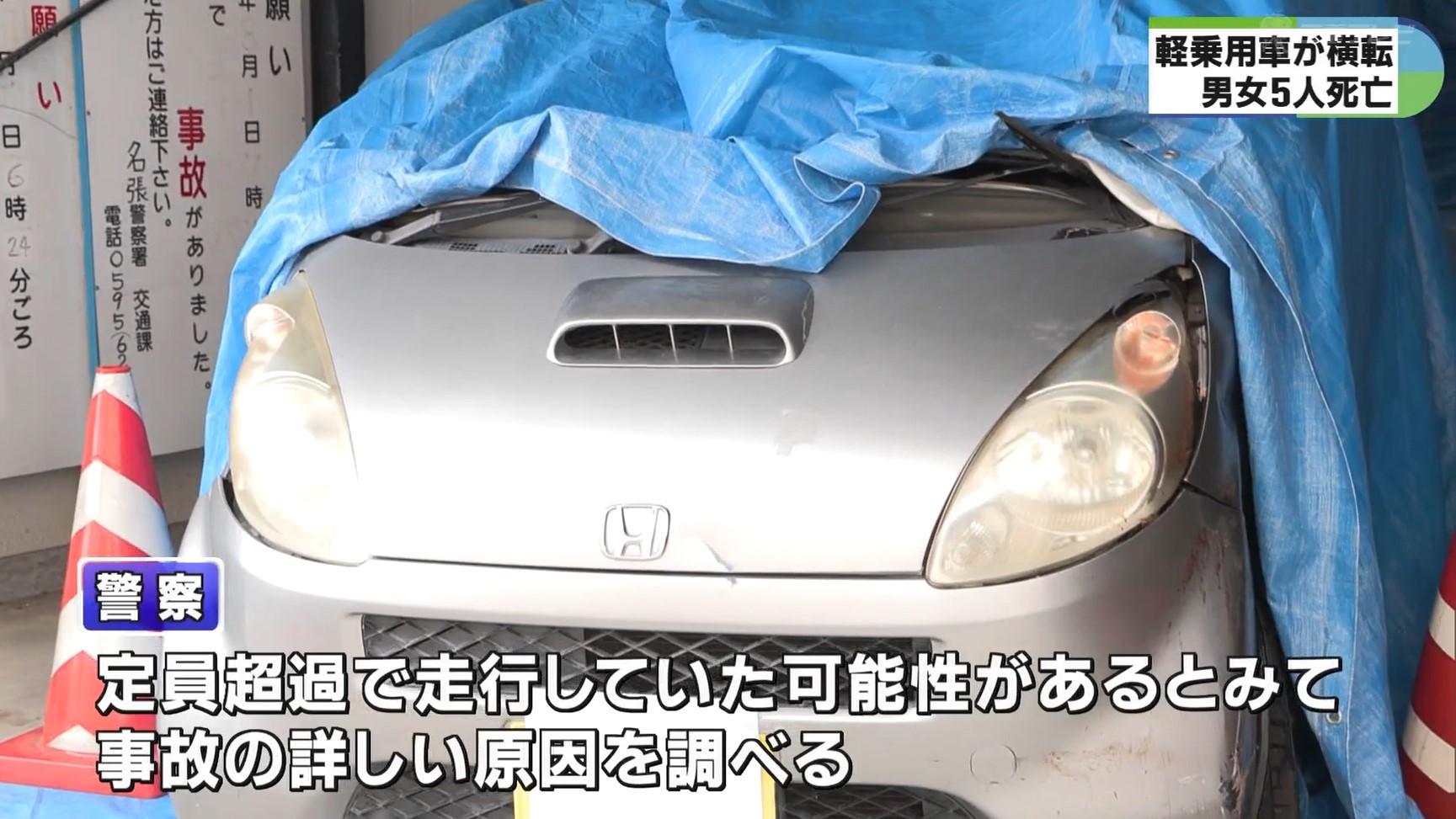 3日未明、三重県名張市の国道で10代から20代の男女6人が乗った軽乗用車が横転する事故があり、5人が死亡しました。警察で事故の原因を調べています。