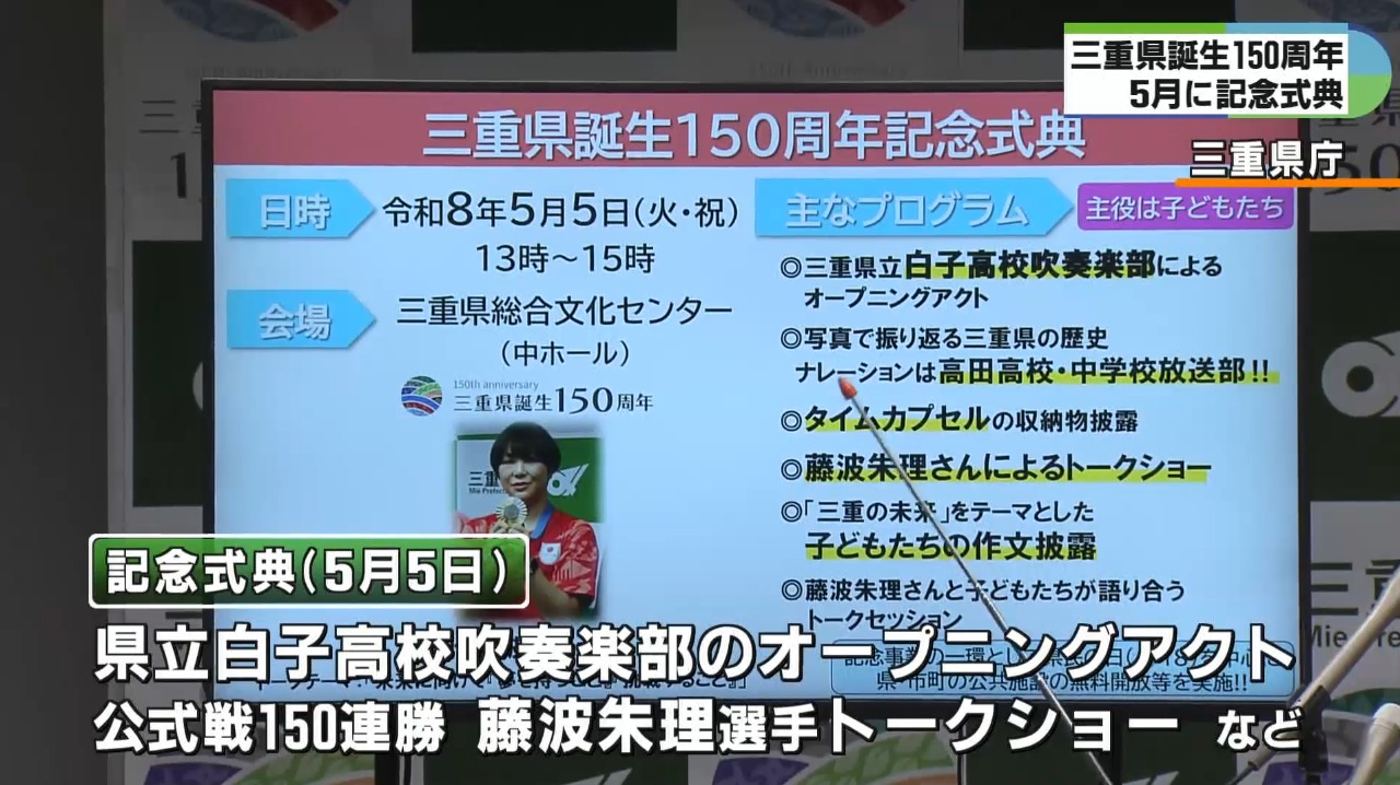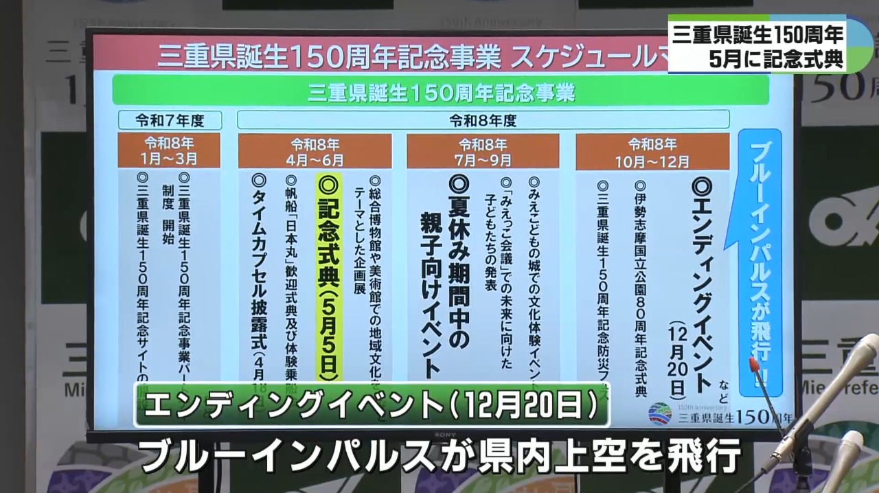 今年、三重県が誕生して150年を迎えることを記念した式典が5月5日に開かれ、12月にはエンディングイベントとして航空自衛隊のブルーインパルスが三重県上空を飛行することになりました。