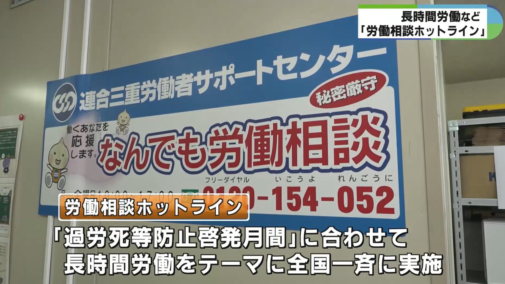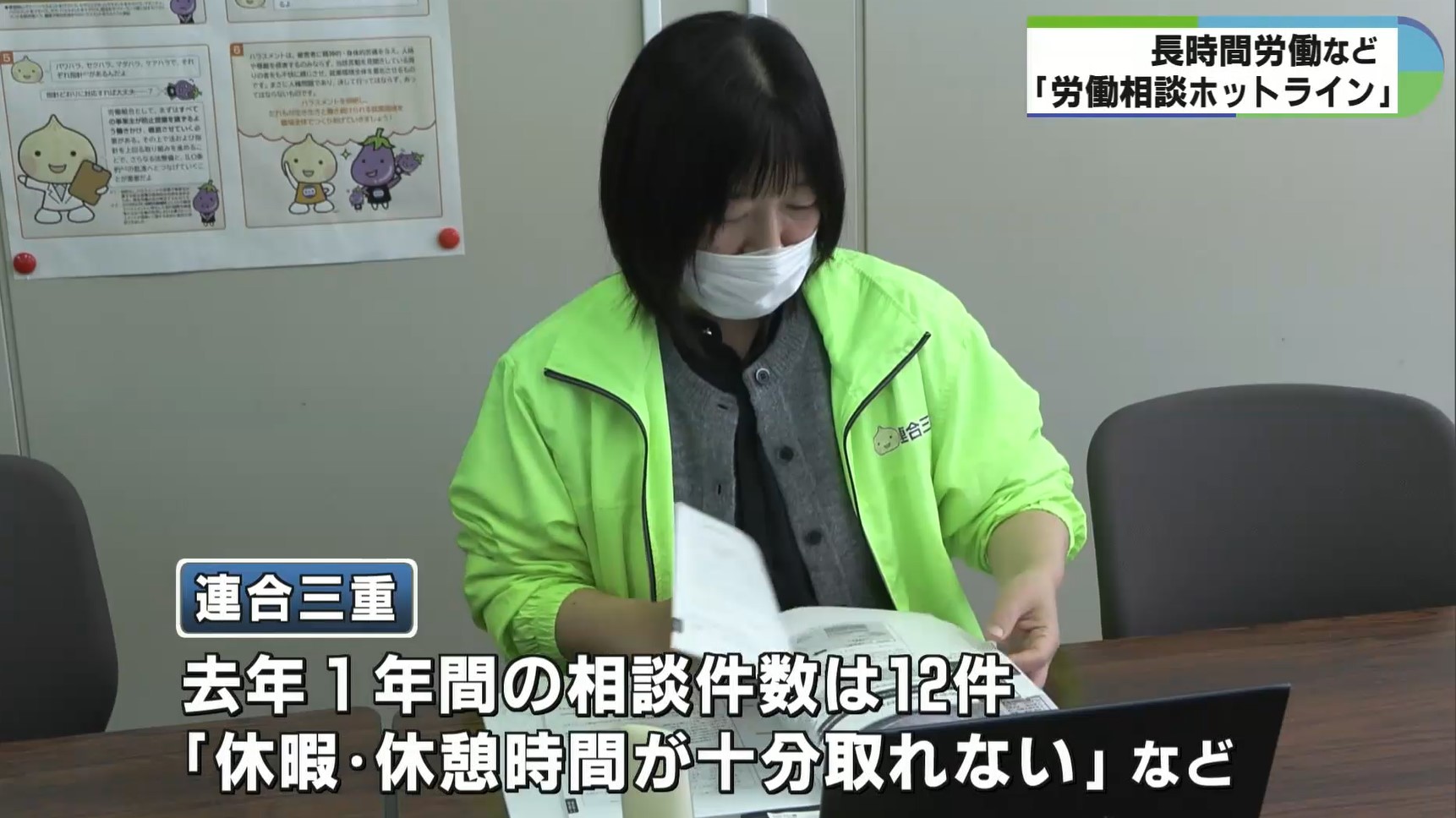 連合三重によりますと、去年1年間の労働時間に関する相談件数は12件で「休暇が少ない」「休憩時間が十分取れない」などの相談があったということです。