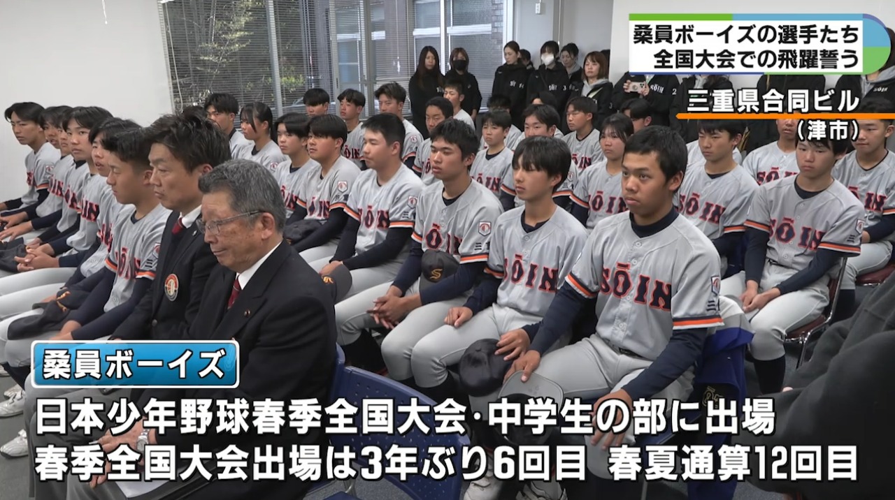 3月下旬に開かれる日本少年野球春季全国大会の中学生の部に、三重県代表として出場する桑員ボーイズが4日、三重県庁を訪問し、大会への意気込みを語りました。
