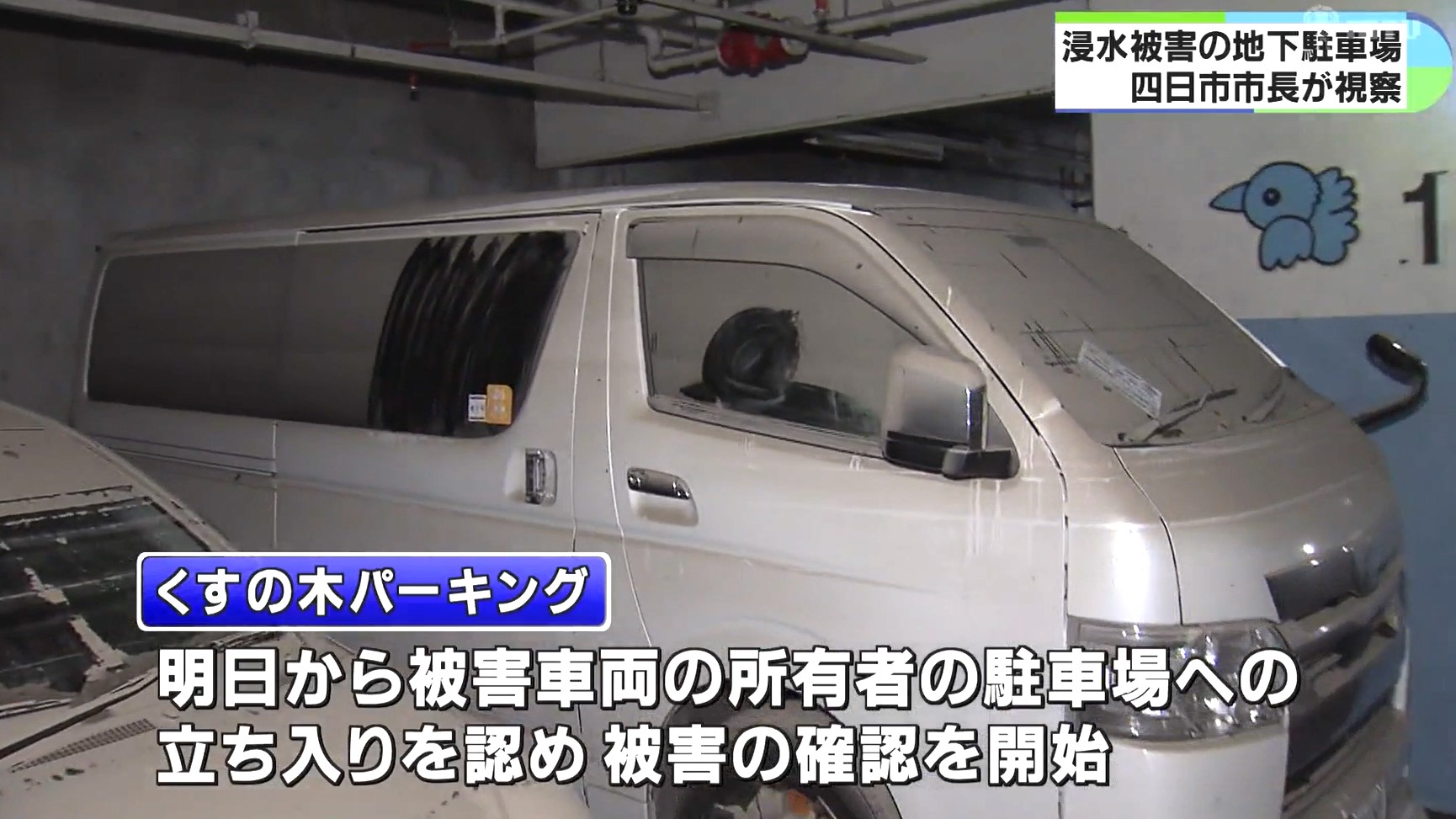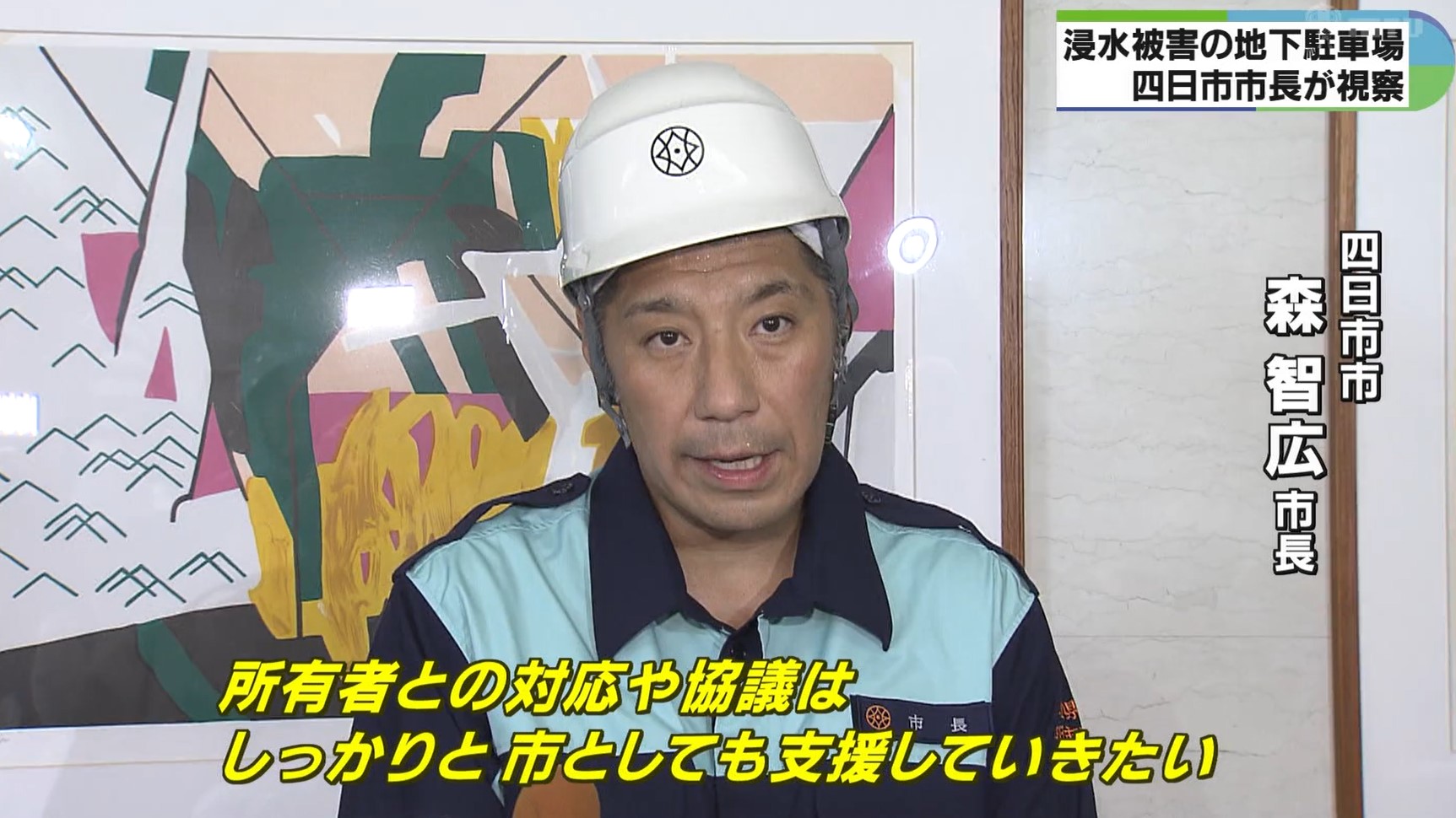 三重県四日市市の森市長が21日、12日の記録的豪雨で浸水被害を受けた市中心部の地下駐車場を視察しました。