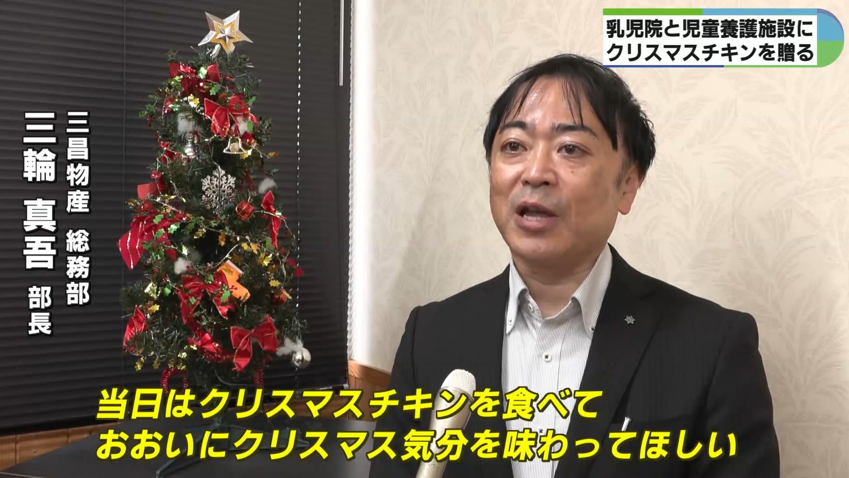 鶏肉の卸売りや加工品の製造販売などを手がける三昌物産では、クリスマス用のローストチキンを地域貢献活動の一環として毎年、市内の児童養護施設などにプレゼントしています。