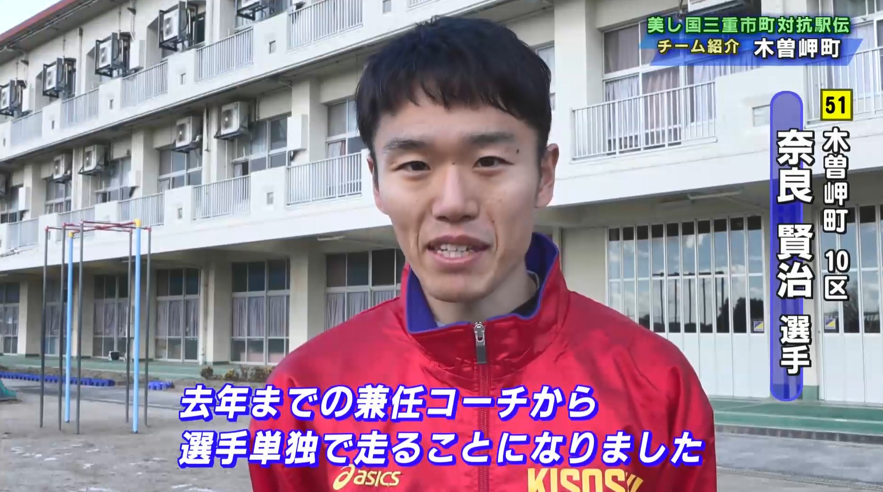 10区にエントリーしているのは奈良賢治選手。奈良選手は「去年までの兼任コーチから選手単独で走ることになりました。選手専任なので例年以上に速く走りたい」と意気込みを語りました。