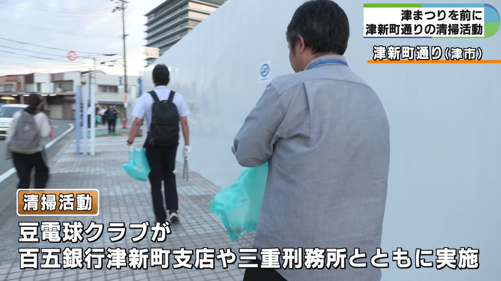 今週末に開かれる三重県津市の秋の風物詩「津まつり」を前に、まつり会場のひとつとなる津新町通りで清掃活動が行われました。