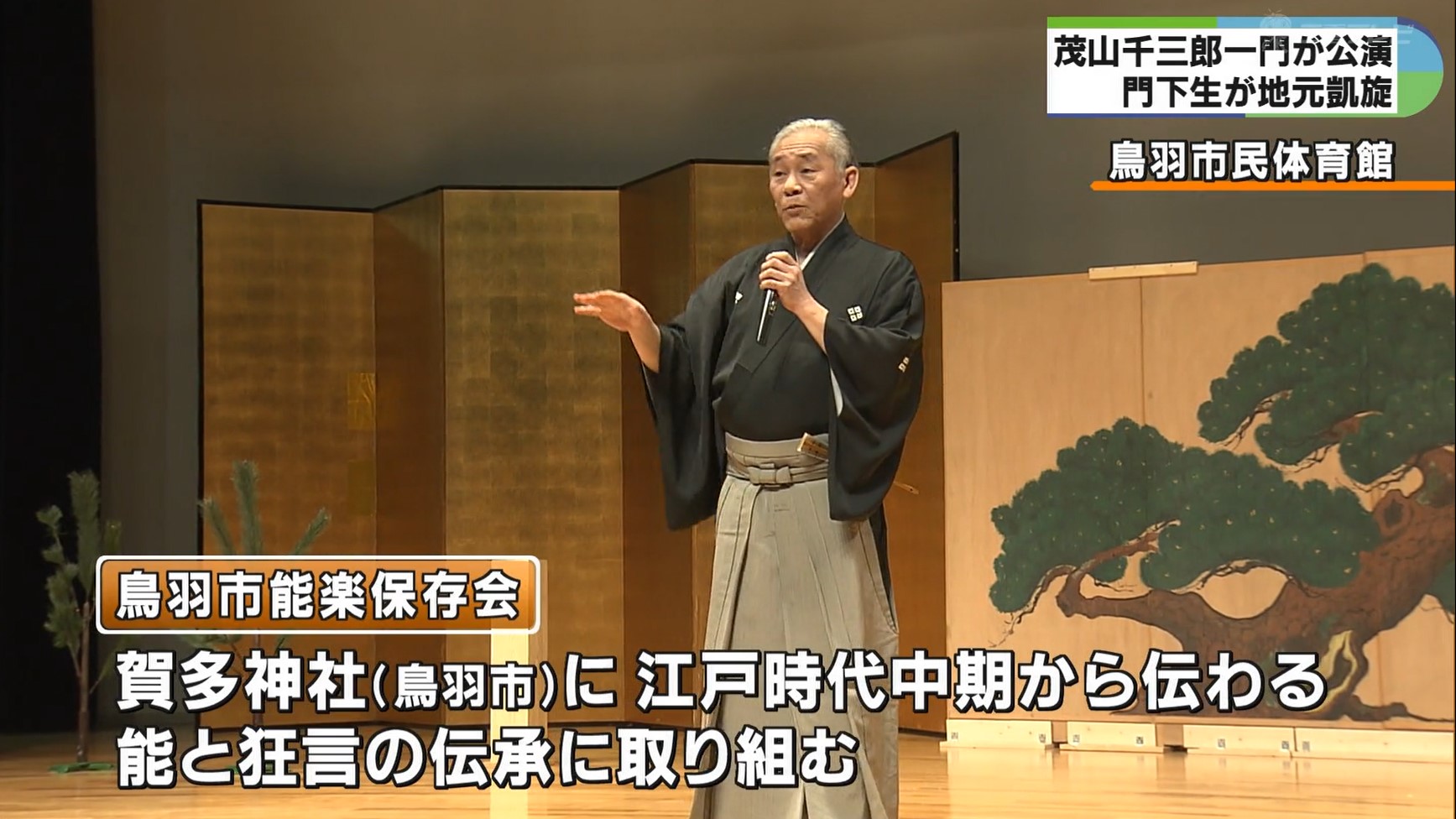 狂言師・茂山千三郎さんの一門による公演が18日、三重県羽市で開催され大勢の人の笑い声が会場いっぱいに広がりました。