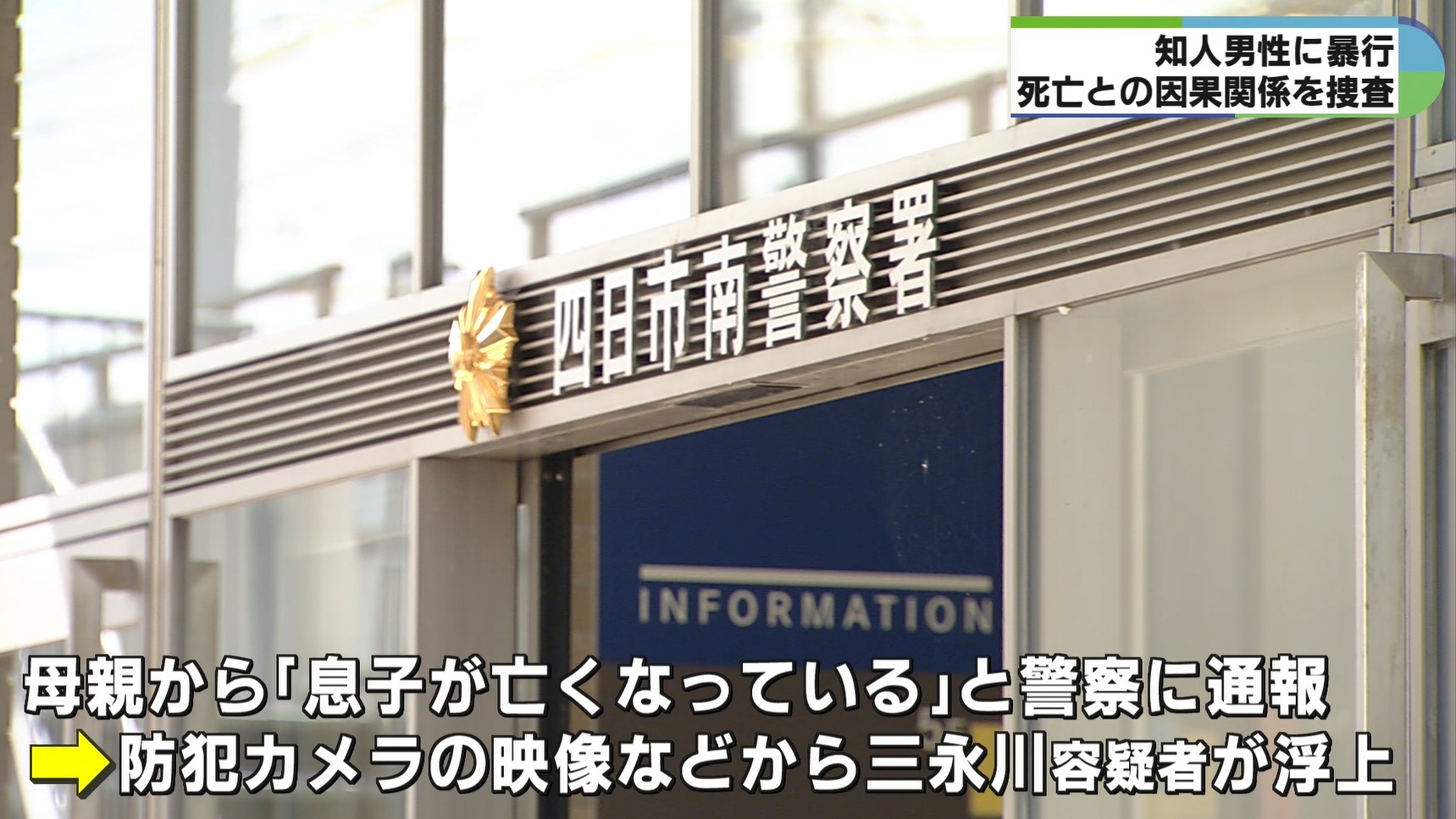警察の調べによりますと、三永川容疑者は16日の未明に、四日市市諏訪栄町の路上で34歳の知人の男性を蹴るなどしてけがをさせた疑いが持たれています。
