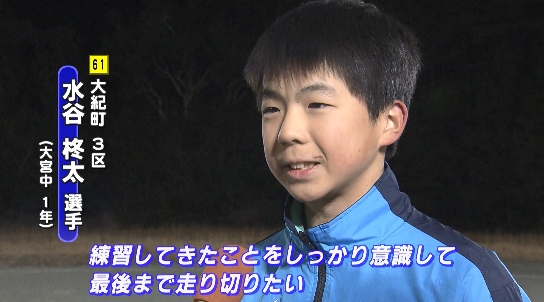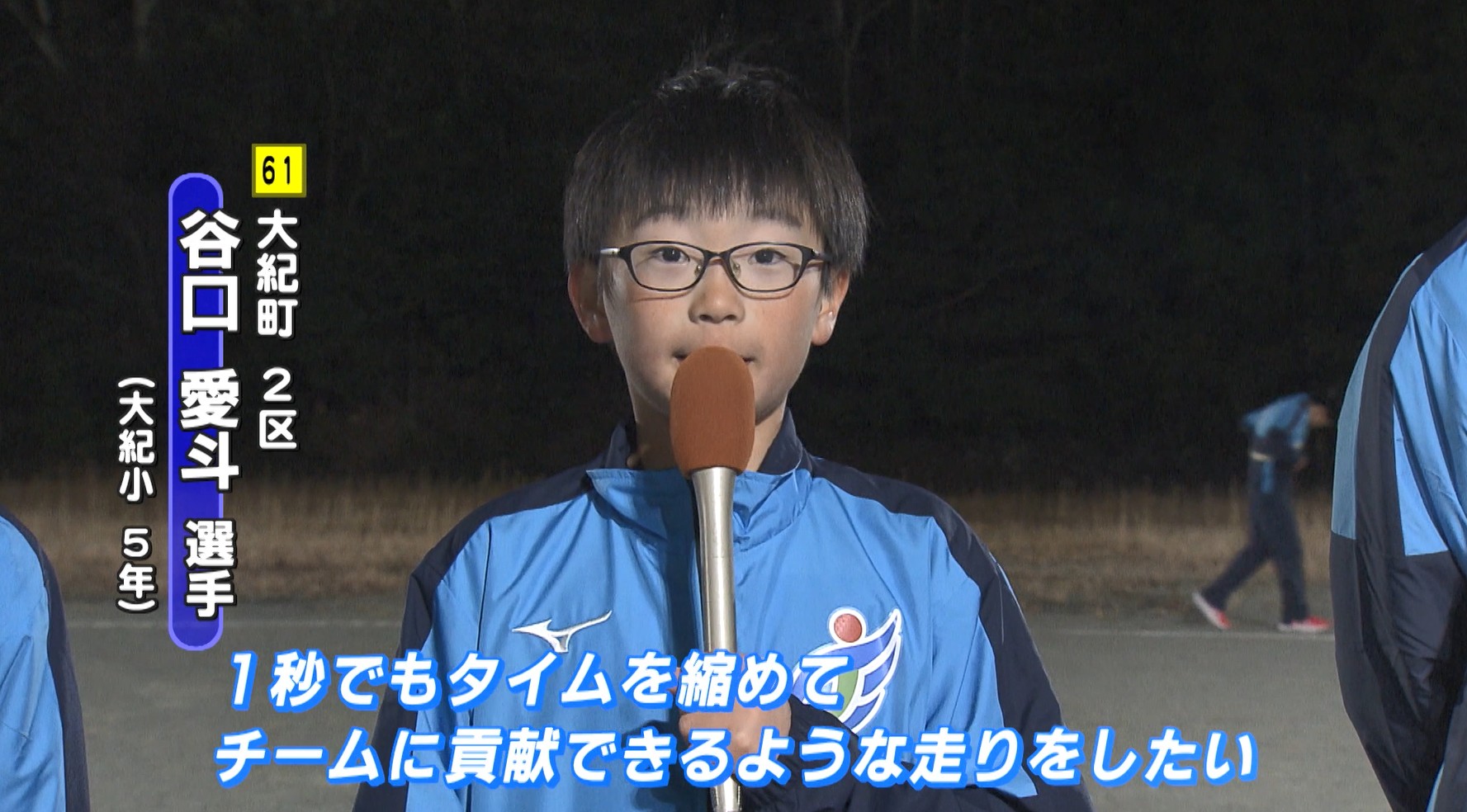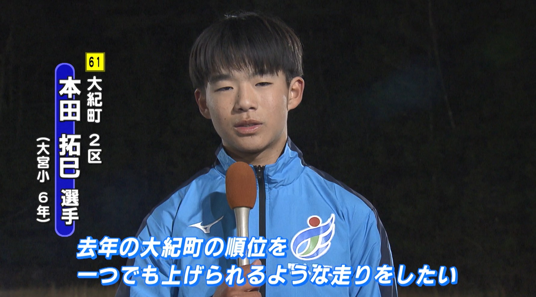 2区にエントリー谷口愛斗選手は「1秒でもタイムを縮めて、チームに貢献できるような走りをしたい」と意気込みを語ると、同じく2区の本田拓巳選手も「今まで練習してきた成果を発揮して、去年の大紀町の順位をひとつでも上げられるような走りをしたい」と順位を上げることを目標と話しています。