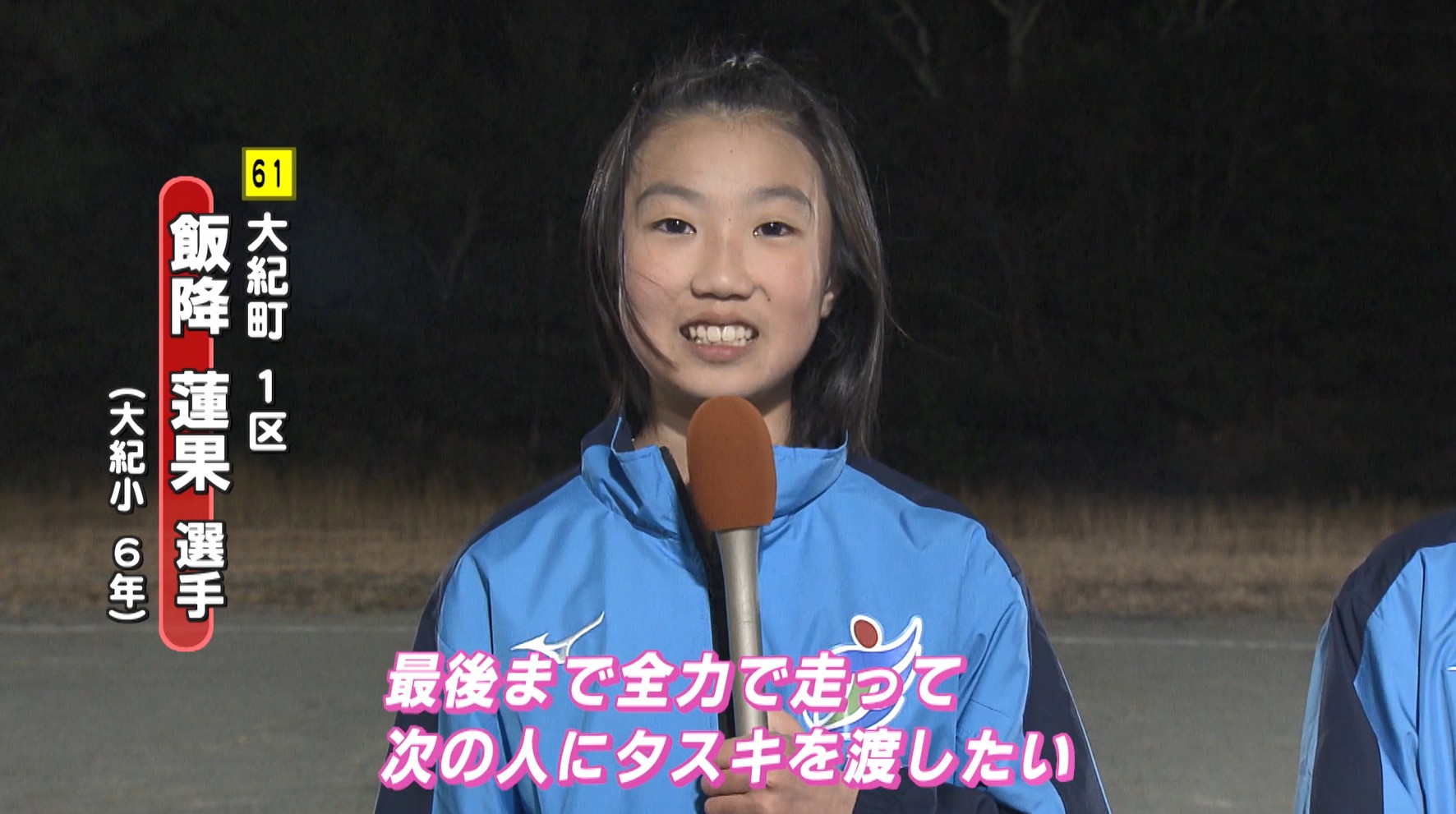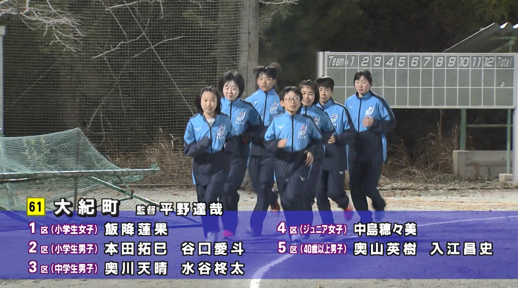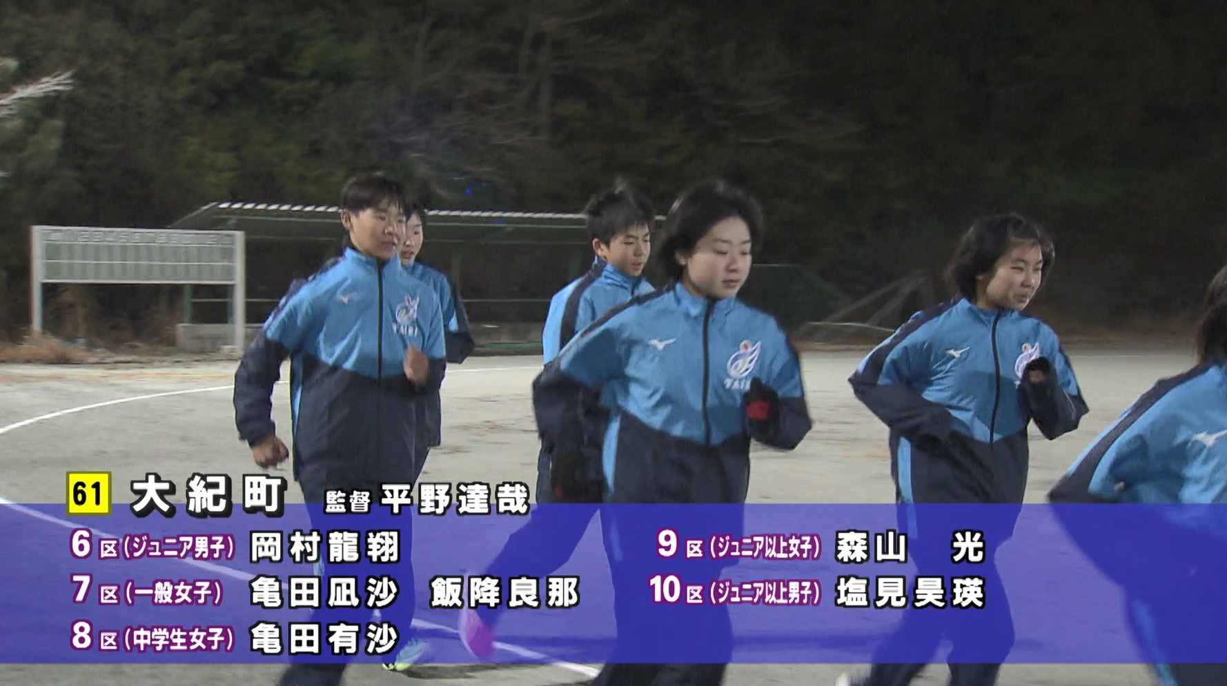 2区にエントリー谷口愛斗選手は「1秒でもタイムを縮めて、チームに貢献できるような走りをしたい」と意気込みを語ると、同じく2区の本田拓巳選手も「今まで練習してきた成果を発揮して、去年の大紀町の順位をひとつでも上げられるような走りをしたい」と順位を上げることを目標と話しています。