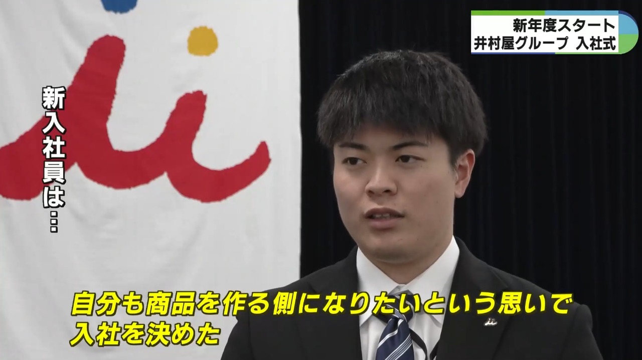 新入社員は「津市出身で小さい頃から井村屋の商品を食べてきたので、自分も商品を作る側になりたいという思いで入社を決めました」「自分の仕事を通じてたくさんの人に笑顔を届けたいのと周りの人への感謝を忘れずに働いていきたい」などと話していました。