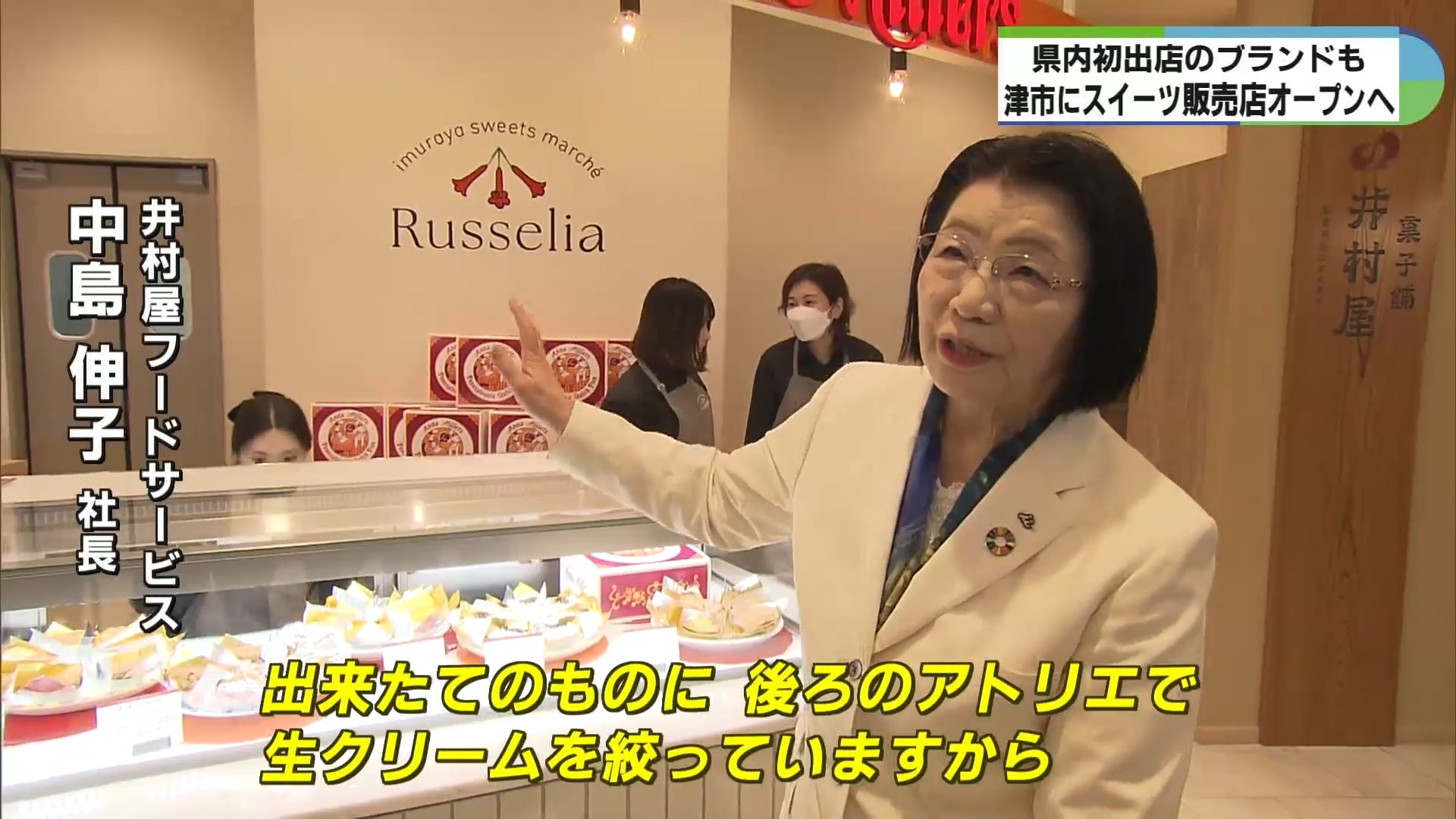 井村屋フードサービスの中島伸子社長は「出来たてのものに後ろのアトリエで生クリームを絞っている。ここでしか買えないものもある。縁があって土地・建物と我々に任せてもらったのでしっかりやりたい」と話しました。