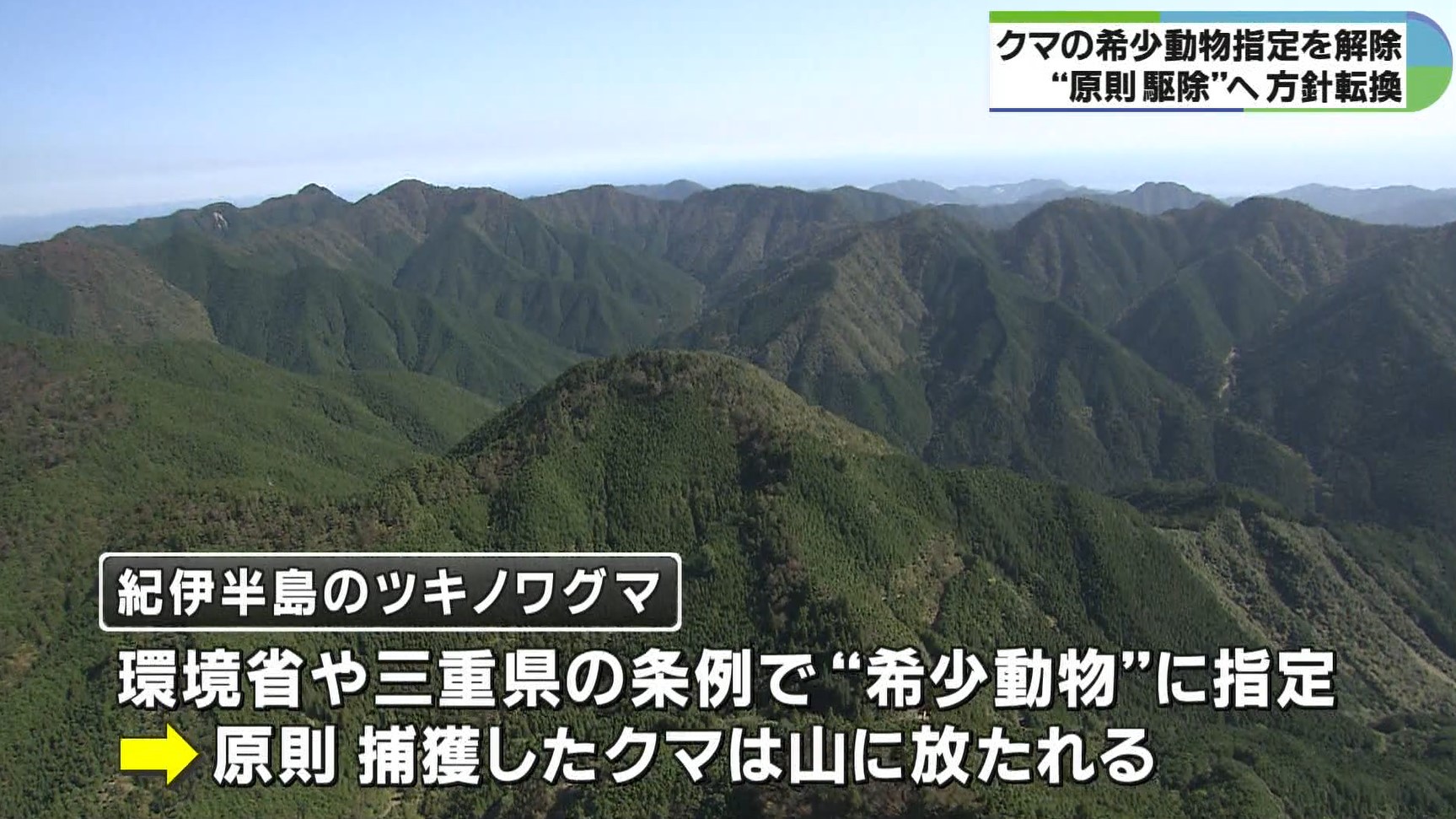 紀伊半島のツキノワグマは、環境省や三重県の条例で希少動物に指定されていて、保護のため原則、捕獲したクマは山に放たれています。