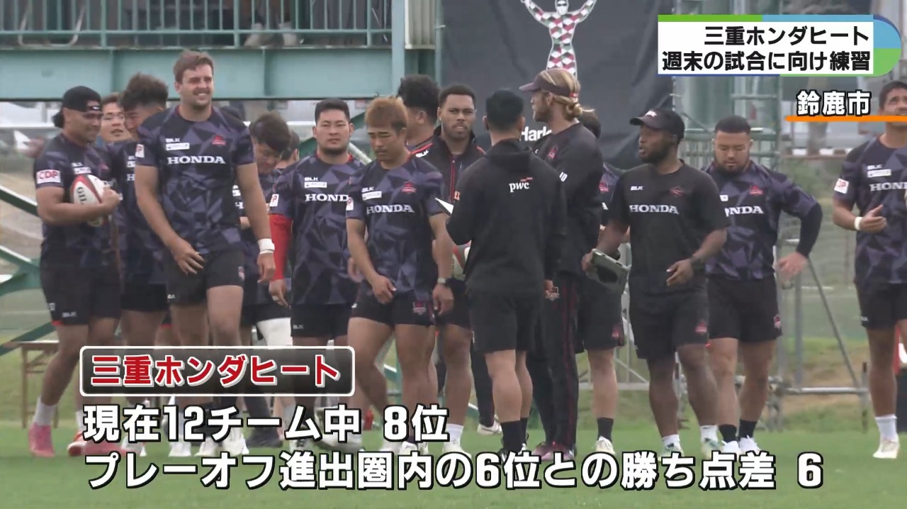 ラグビー国内最高峰、リーグワンに所属する三重ホンダヒート。リーグ戦も残すところ、あと3試合となる中、週末の試合に向け練習を行いました。