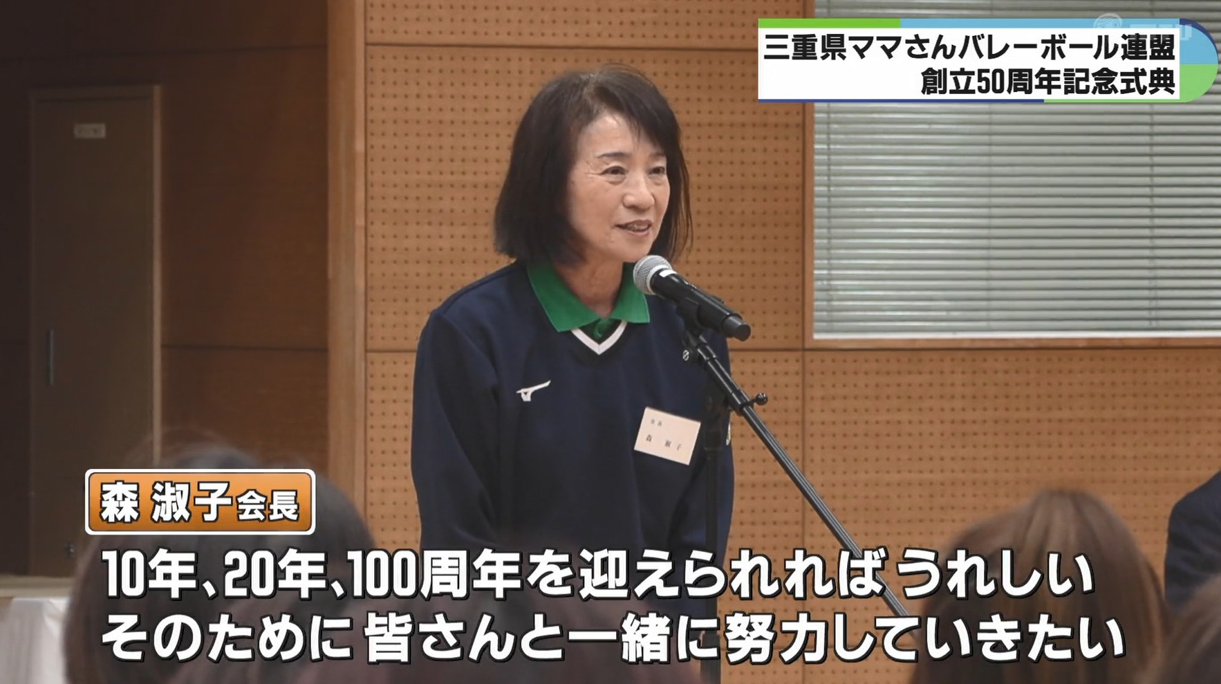 「三重県ママさんバレーボール連盟」が創立50周年を迎え22日、三重県津市で記念式典が開かれました。