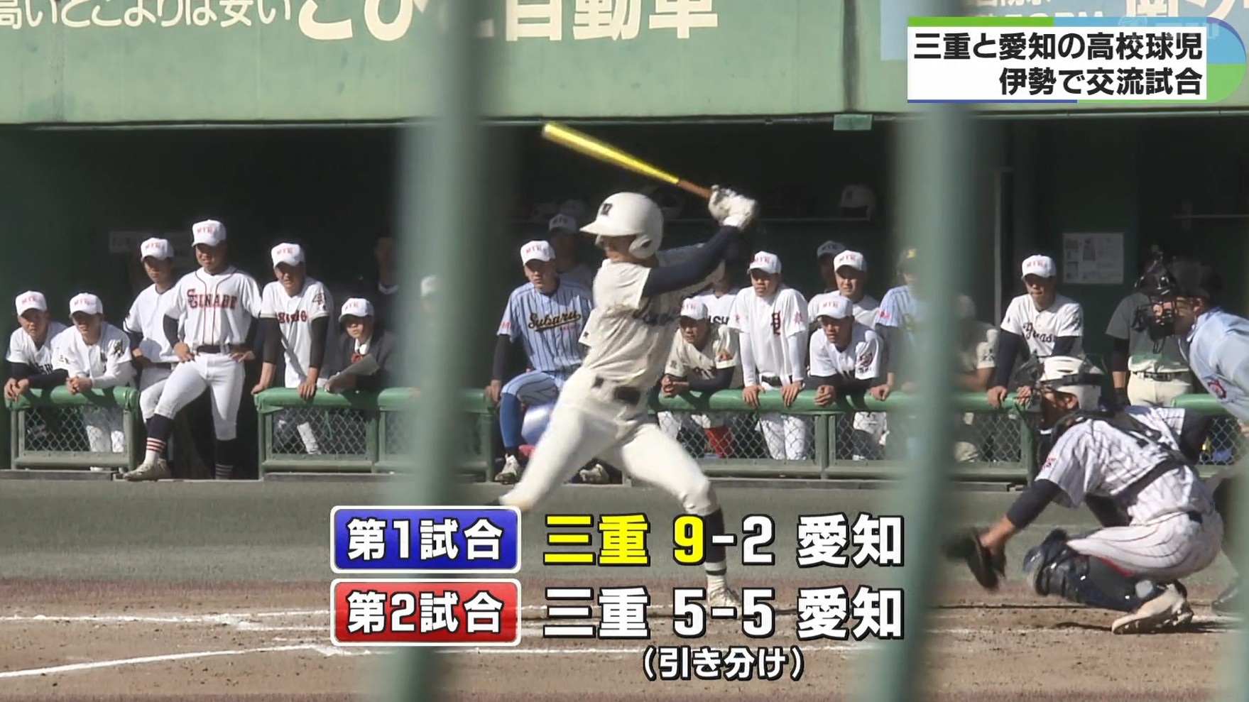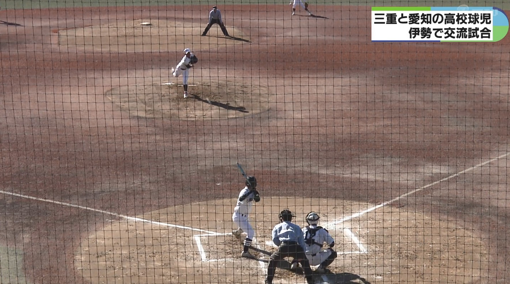 三重と愛知の両県から選ばれた高校野球の選手たちが対戦する交流試合が22日、三重県伊勢市のダイムスタジアム伊勢で開かれました。