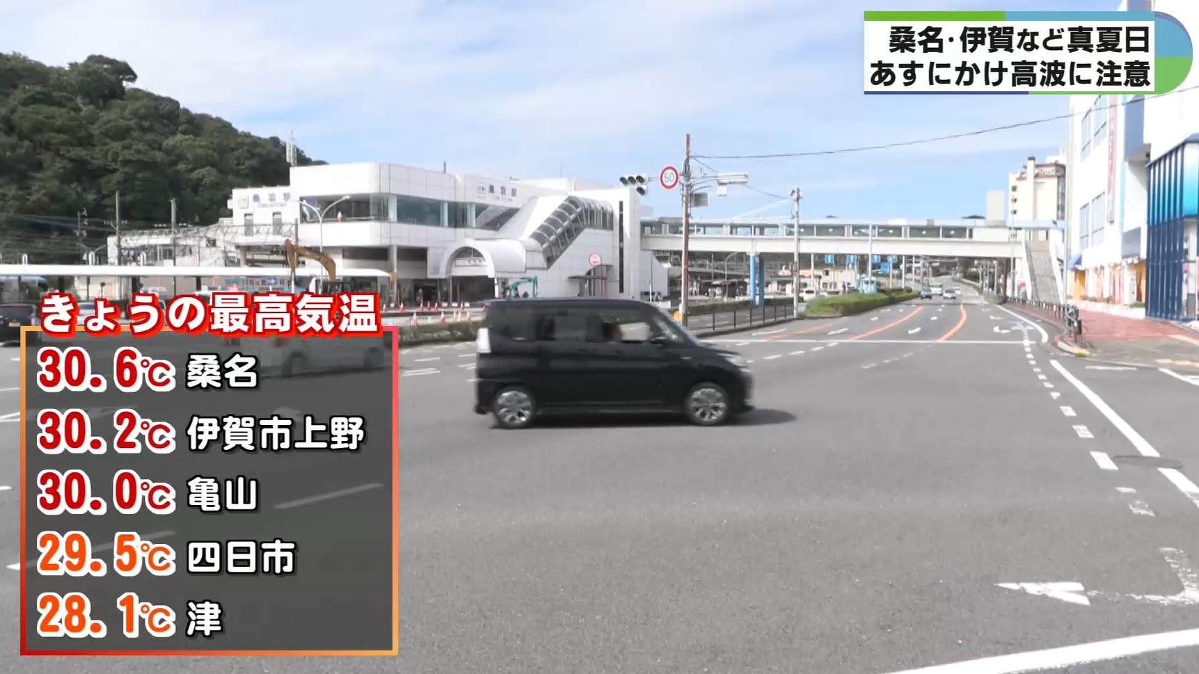 最高気温は桑名市で30.6℃、伊賀市で30.2℃、亀山市で30.0℃と、30℃以上の真夏日になるなど県内各地で9月上旬から中旬並となりました。