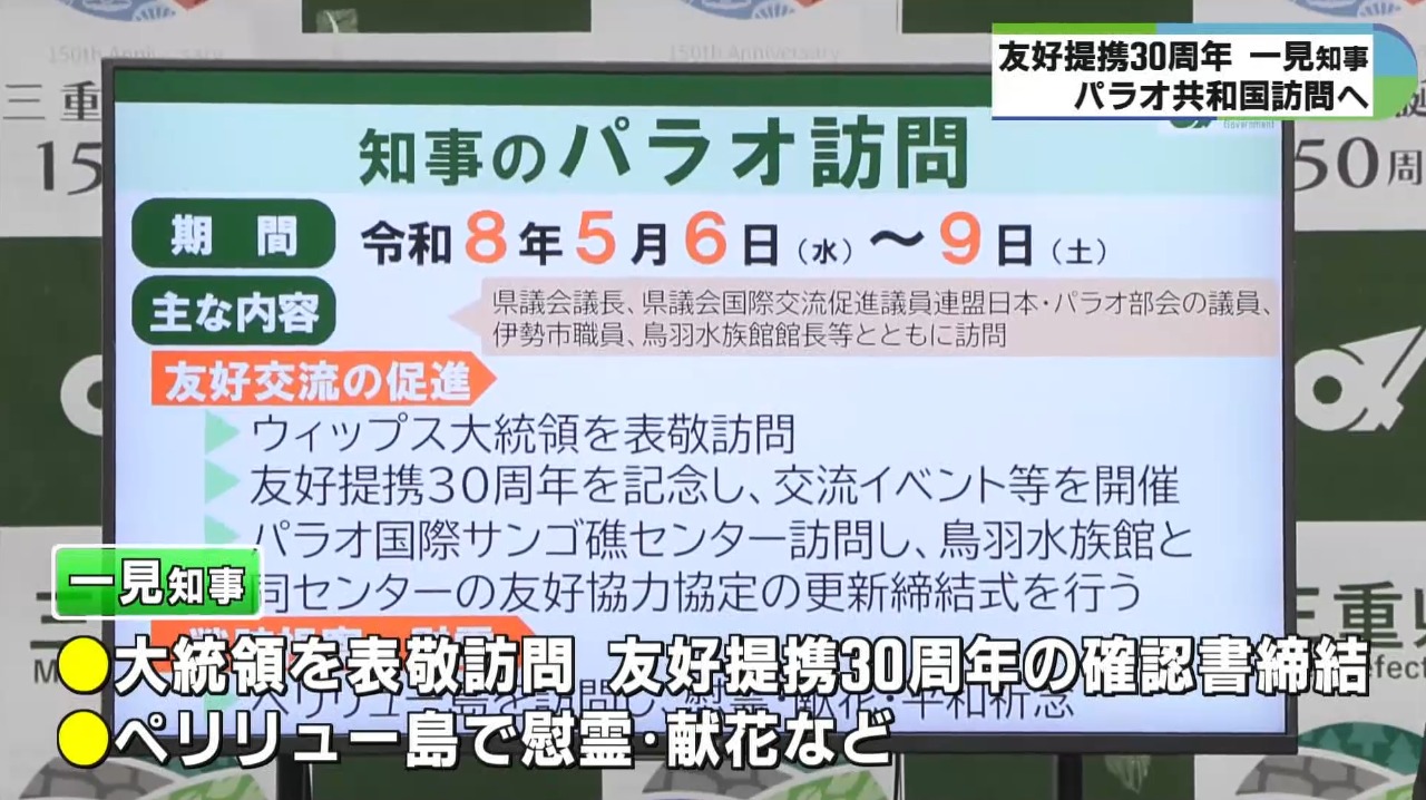 三重県とパラオの友好提携30周年 知事が表敬訪問へ