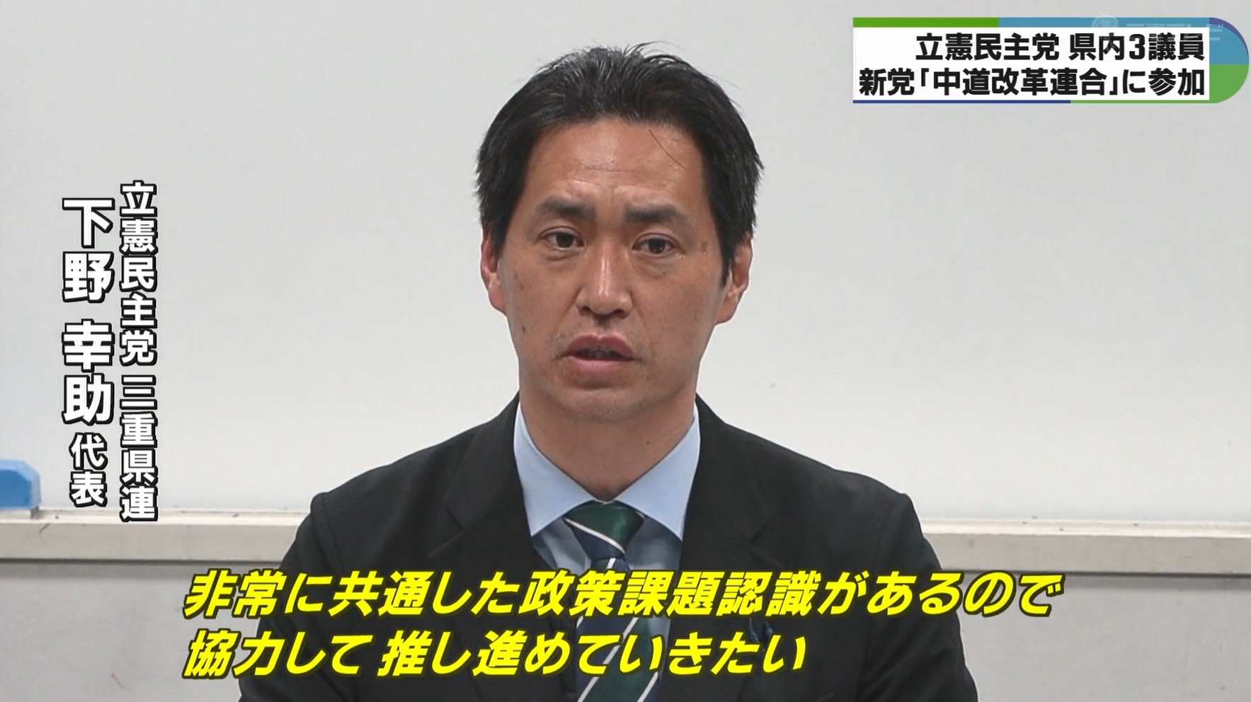 衆議院の解散・総選挙に向けて、立憲民主党と公明党が結成する新しい党「中道改革連合」に、三重県内の立憲民主党の3人の衆議院議員が参加することを表明しました。
