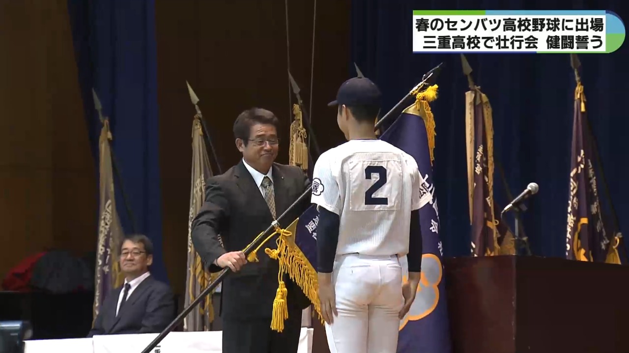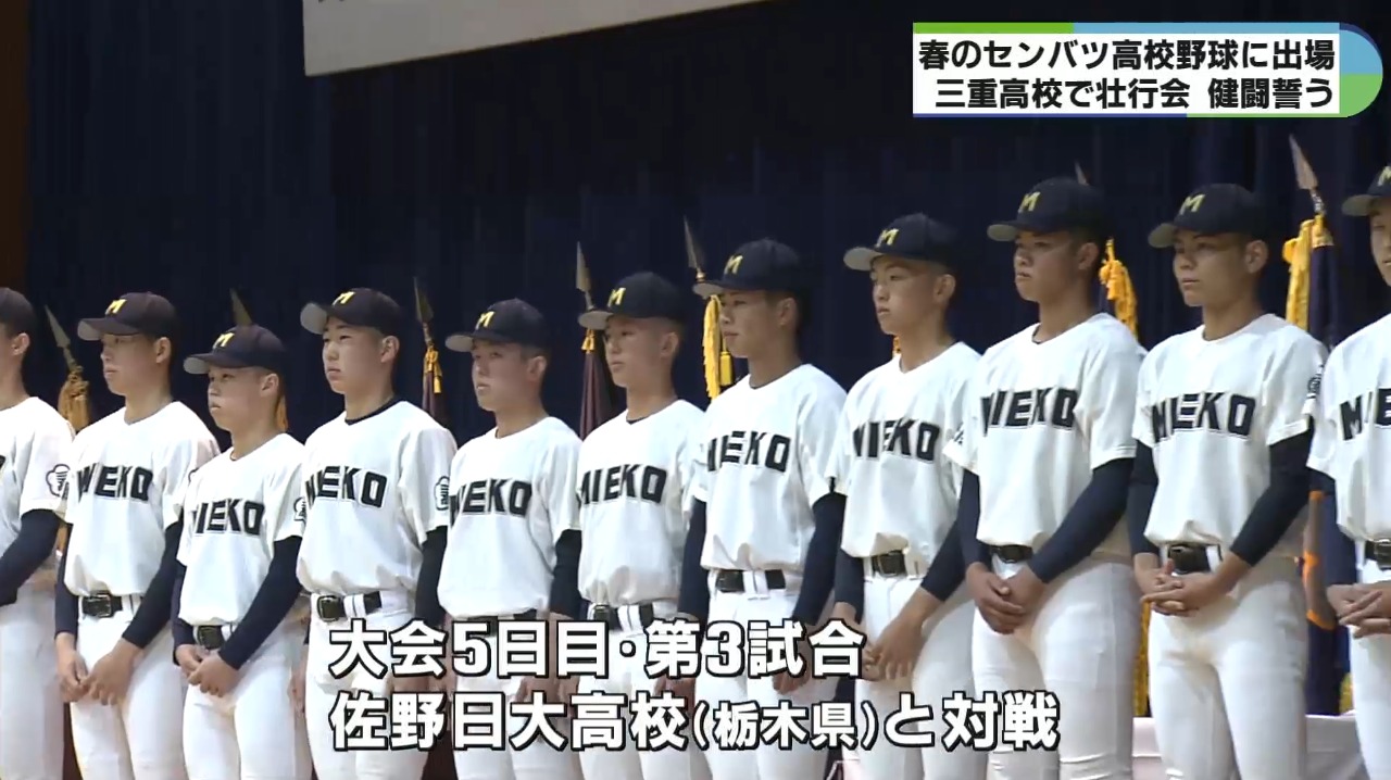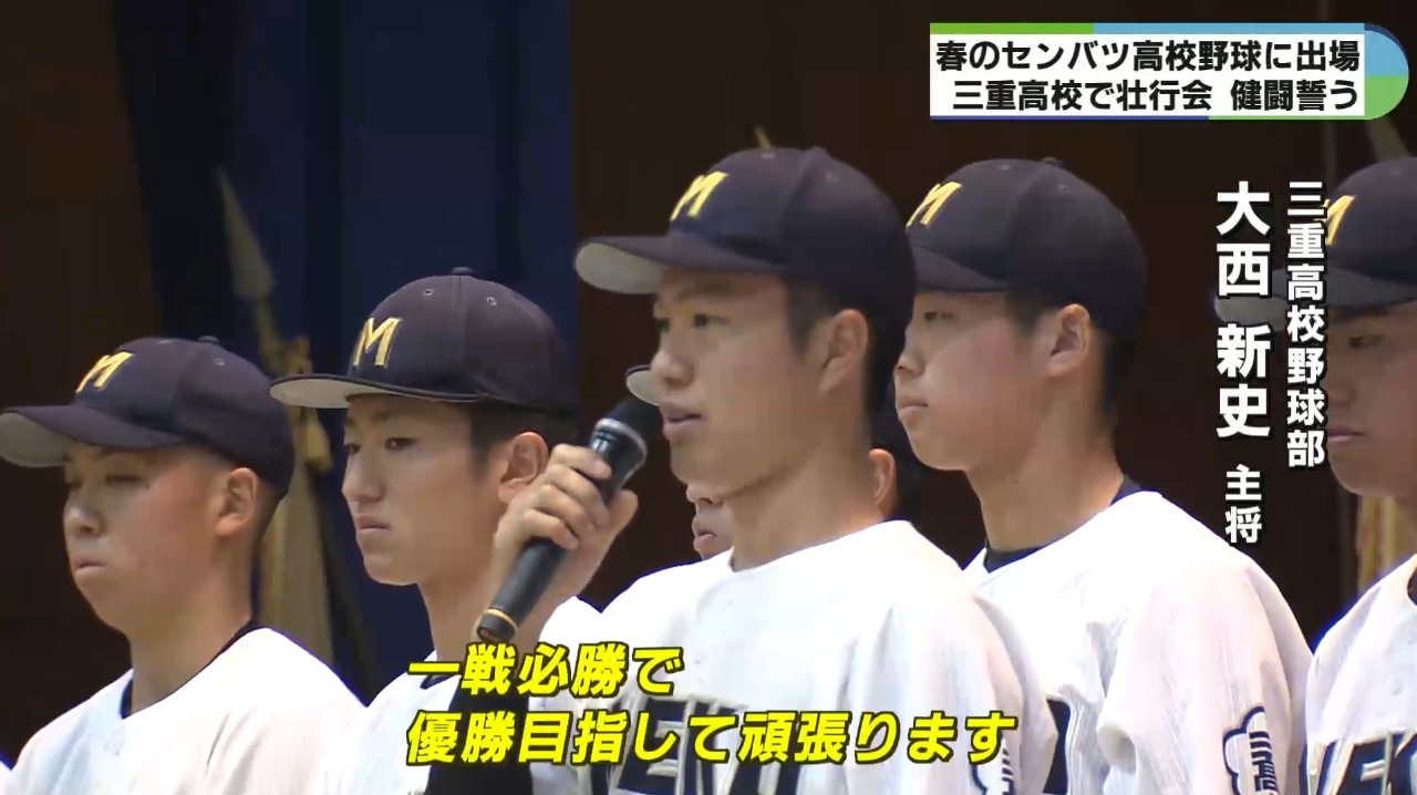 19日に甲子園球場で開幕する春のセンバツ高校野球大会に向けて9日、三重高校の野球部を激励する壮行会が開かれました。