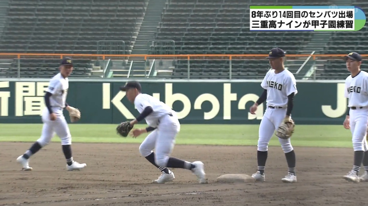 3月19日に開幕する春の選抜高校野球大会に出場する三重高校の選手たちが15日、甲子園球場で練習を行いグラウンドの感触を確かめました。