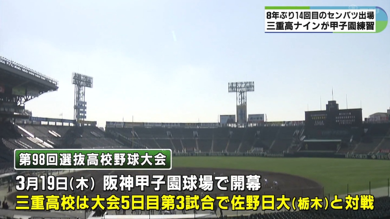 選抜高校野球大会は3月19日阪神甲子園球場で開幕し、三重高校は大会5日目の第3試合で栃木県の佐野日大高校と対戦します。