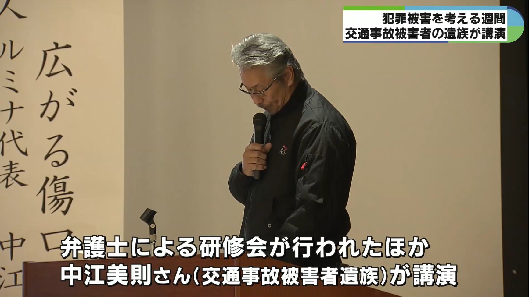 中江さんは加害者だけでなく、発生当時は病院や警察、マスコミなどあらゆるものに怒りを感じたことなどを声を詰まらせながら話し、参加者を前に残された遺族の思いを明かしていました。