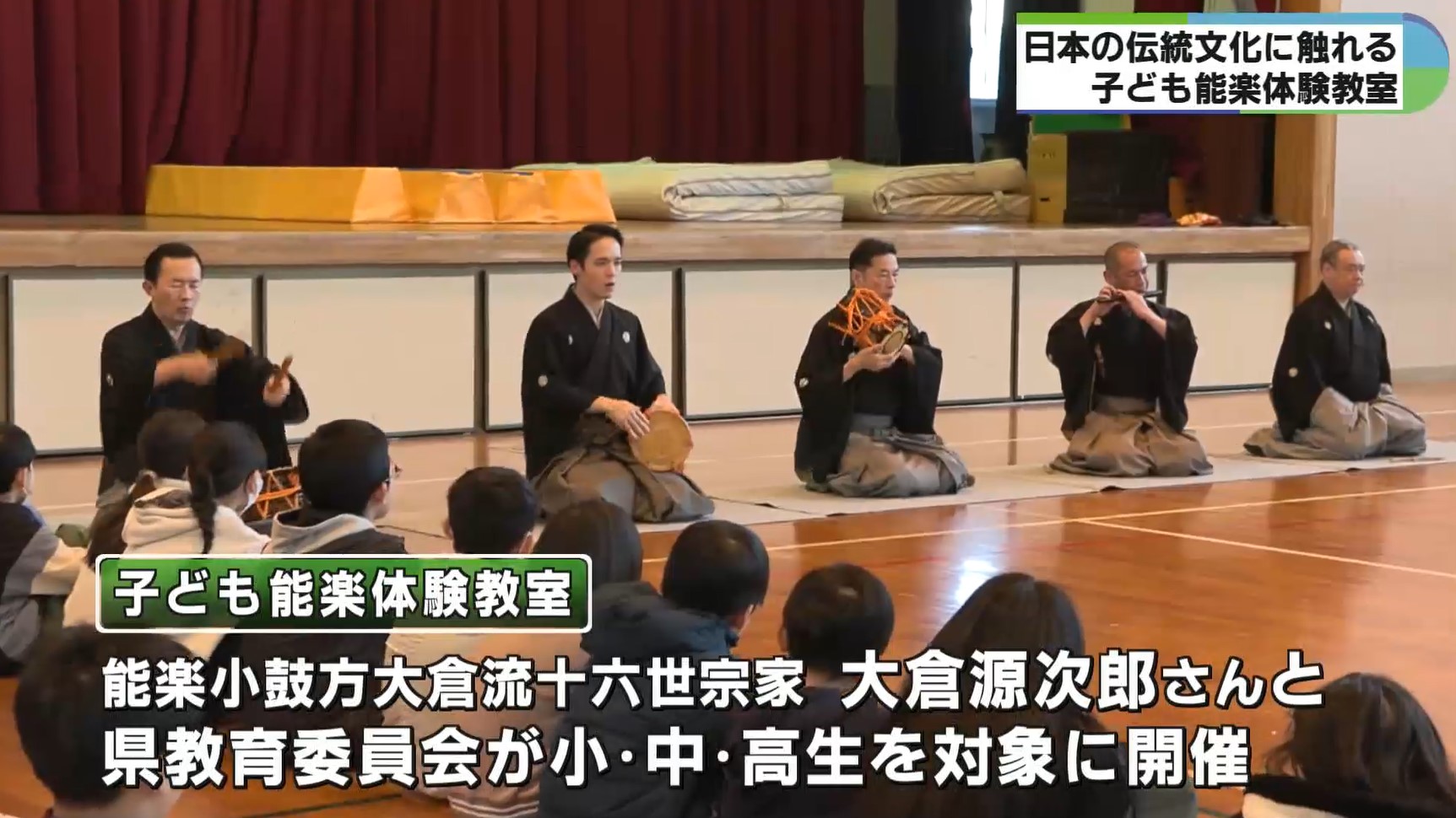 この教室は、岡三加藤文化振興財団の支援を受け、能楽小鼓方大倉流十六世宗家の大倉源次郎さんと三重県教育委員会が、県内の小・中・高校生を対象に開いているものです。