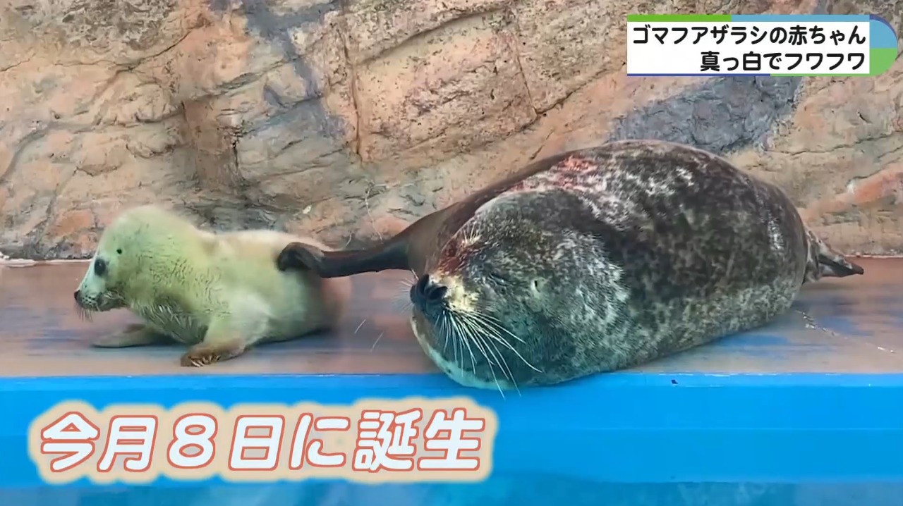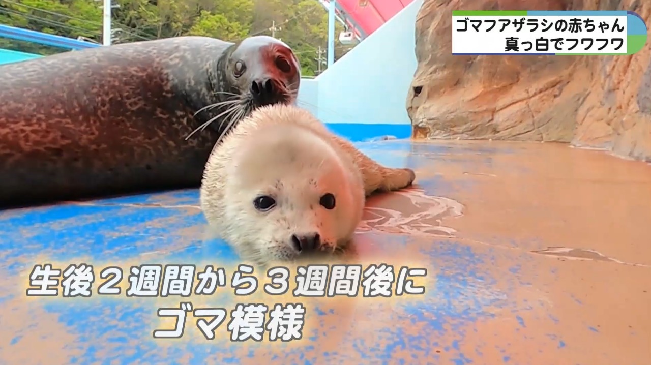 三重県伊勢市にある伊勢シーパラダイスでゴマフアザラシの赤ちゃんが生まれ、まっしろでフワフワの今だけの姿を見ようと、連日、多くの人が訪れています。