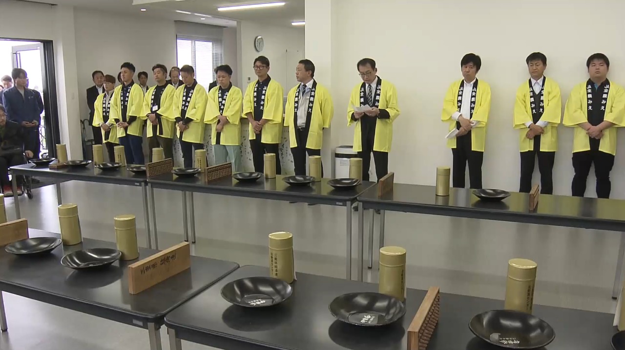 初取引の結果、1キロ当たりの最高価格は2万5000円となり、平均価格は近年の緑茶人気を受け、去年の2倍以上となる、過去10年で最も高い2万1478円となりました。