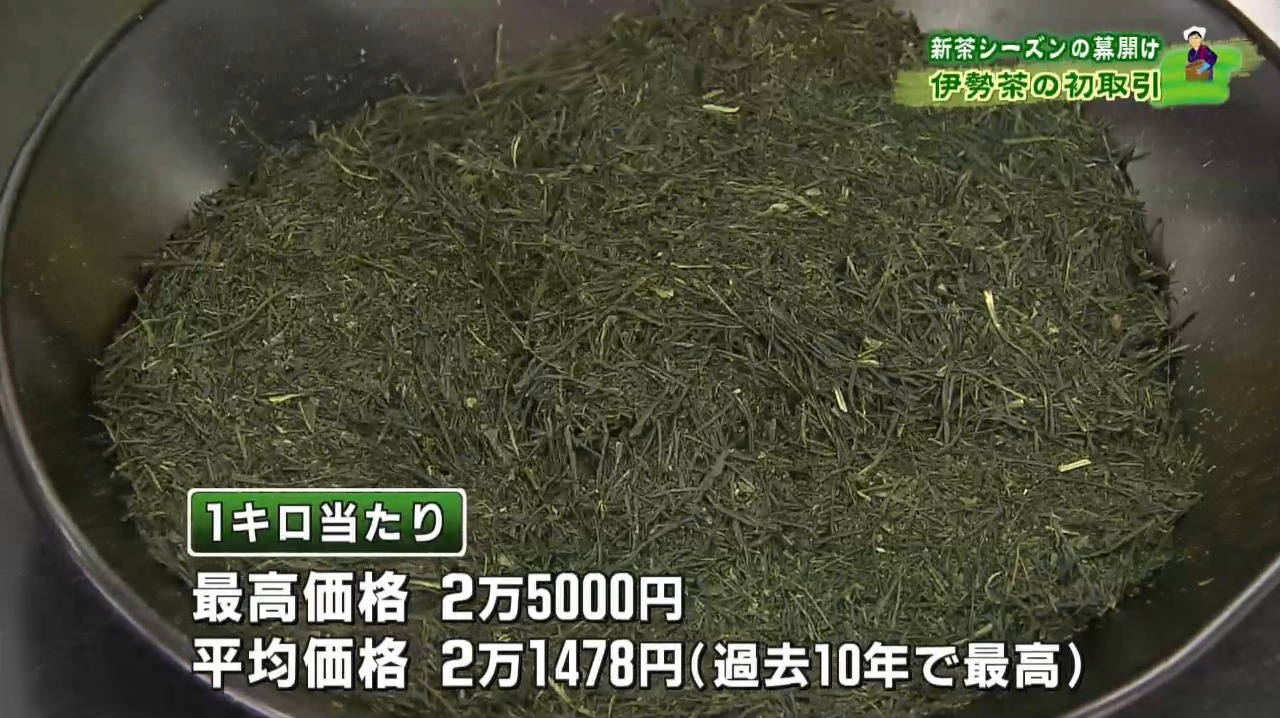 来月2日の八十八夜を前に22日、三重県鈴鹿市で、県内で生産された伊勢茶の初取引が行われました。