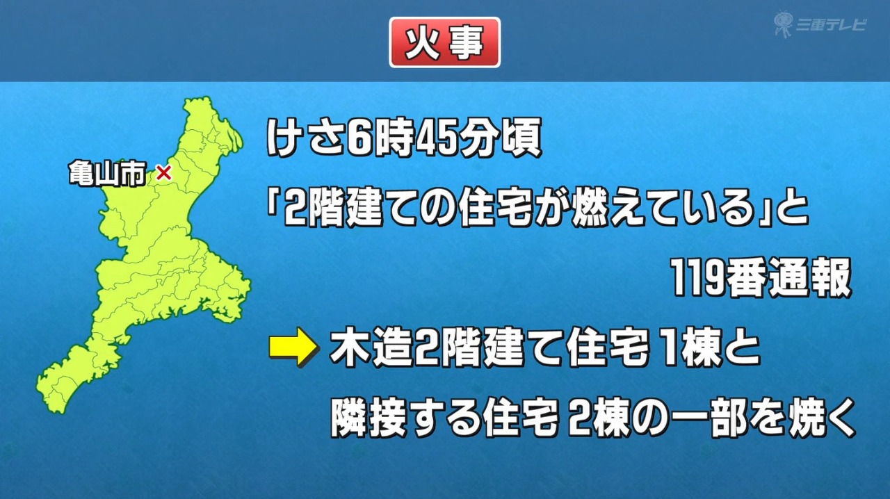 警察と消防によりますと、26日の午前6時45分頃、亀山市関町で「2階建ての住宅が燃えている」と近くに住む人から消防に通報がありました。