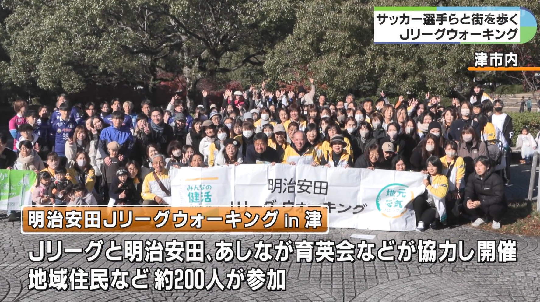 日々の健康維持に役立ようと、サッカー選手らとともにまちを歩くイベントが6日に三重県津市で開かれました。