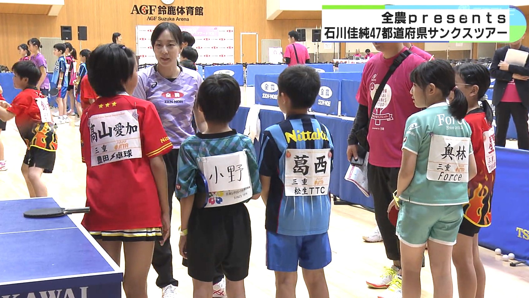 元卓球日本代表の石川佳純さんが小学生に指導する「石川佳純47都道府県サンクスツアーin三重」が11日に鈴鹿市で開かれ、石川さんが子どもたちに熱血指導しました。