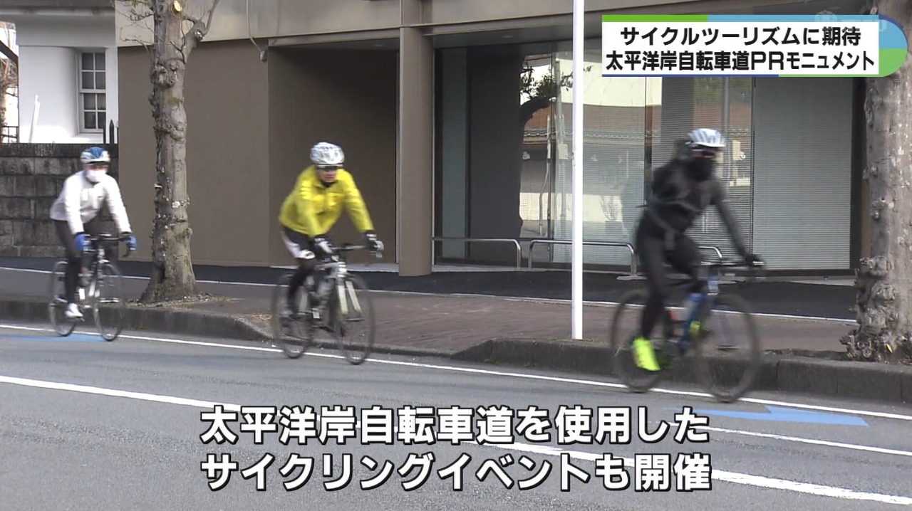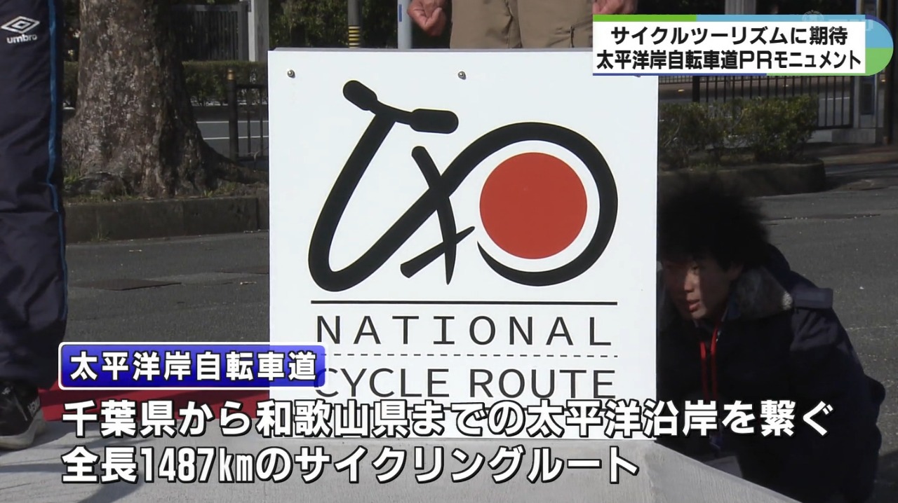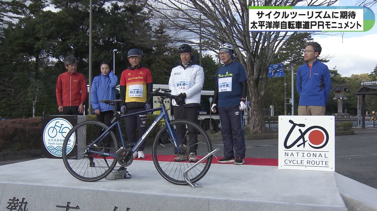 千葉県から和歌山県までの太平洋沿いを走るサイクリングルート・太平洋岸自転車道をPRするモニュメントが三重県伊勢市に設置され、8日に除幕式が行われました。