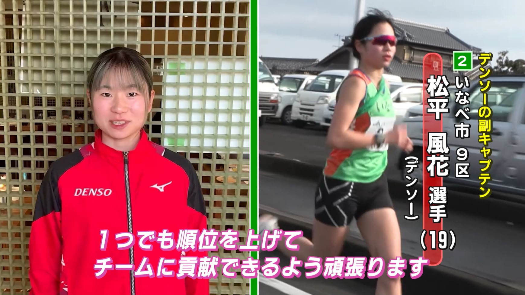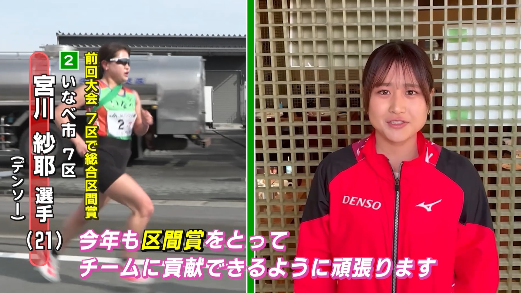 前回大会7区で総合区間賞を獲得し、今回も7区を走る宮川紗耶選手が「今年も区間賞をとってチームに貢献できるように頑張ります」と区間賞を宣言すると、デンソーの副キャプテンで9区を走る松平風花選手も「1つでも順位を上げて、チームに貢献できるよう頑張ります」と意気込んでいます。
